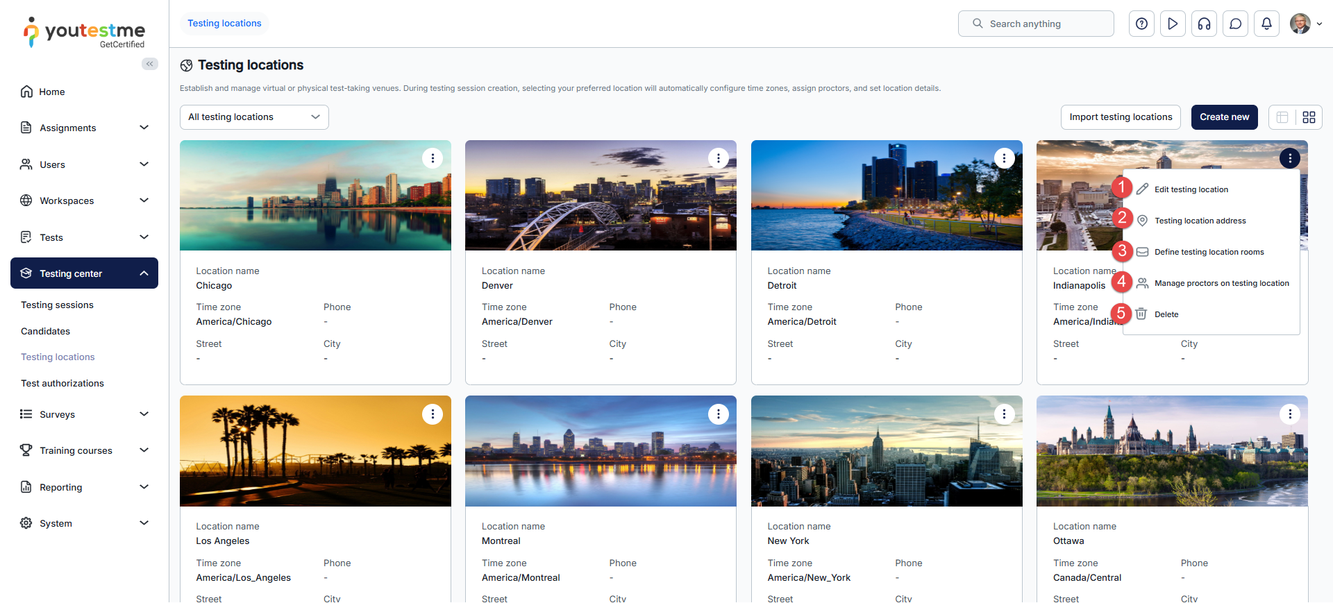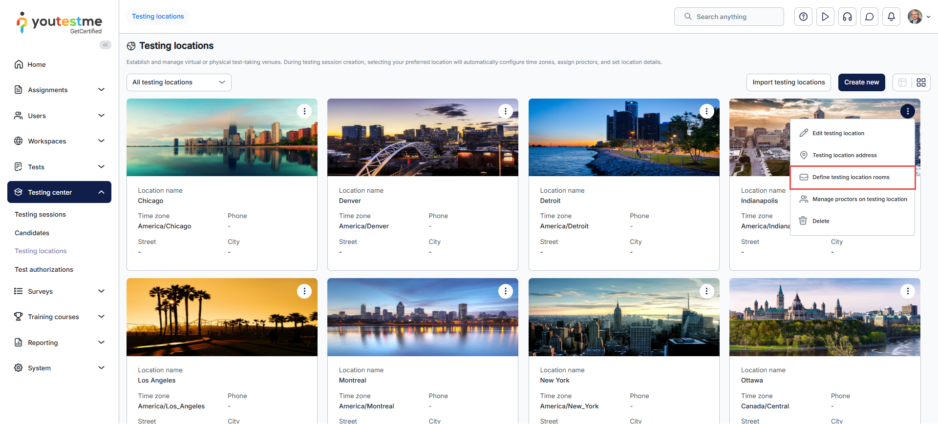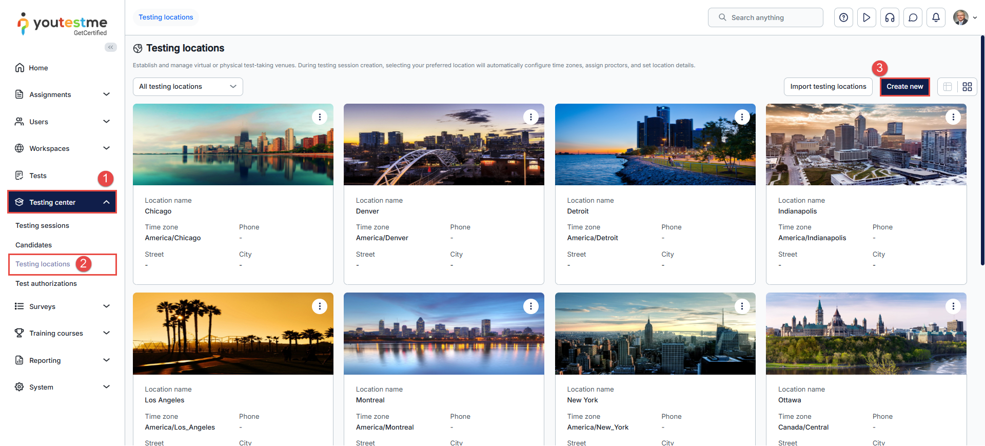 - Navigate to the Testing locations.