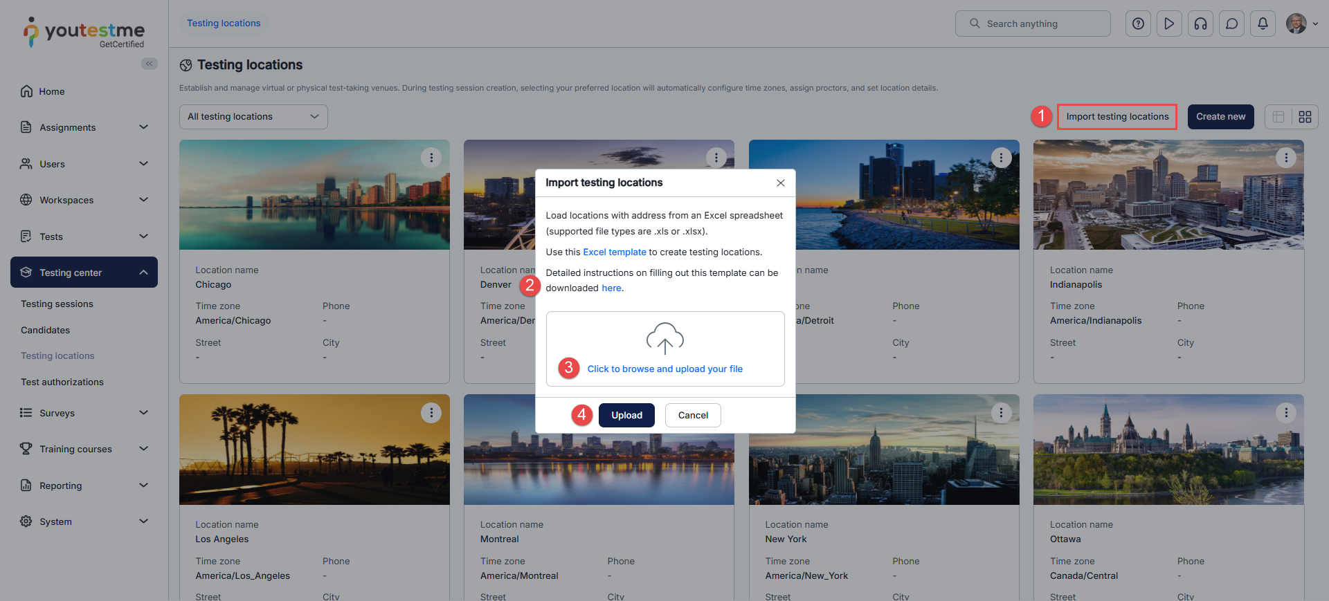 To download the list of available testing locations: