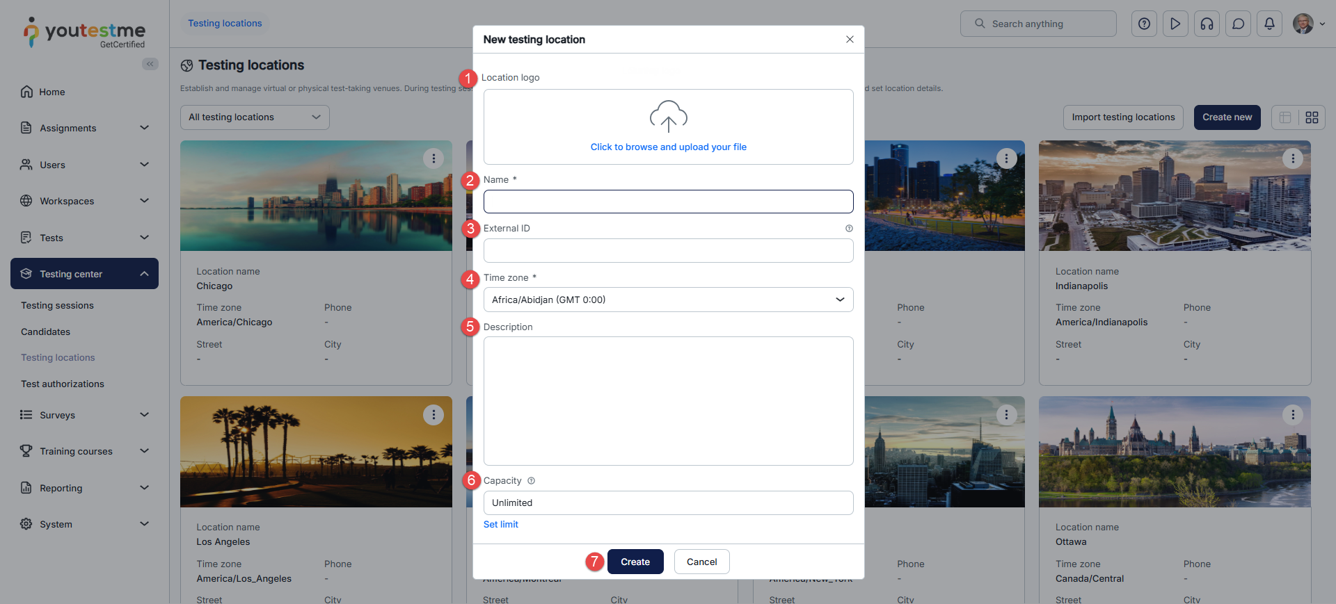 - Enter a unique, clear name for the testing center.