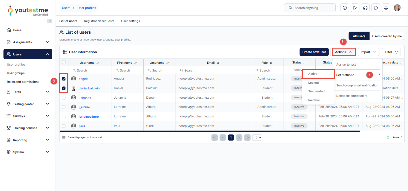 This article outlines the process of reactivating the accounts of existing users and sending them new passwords. For users who conduct tests intermittently, changing their status from active to inactive during non-testing periods proves beneficial. Inactive users are temporarily excluded from processing until their accounts are reactivated.