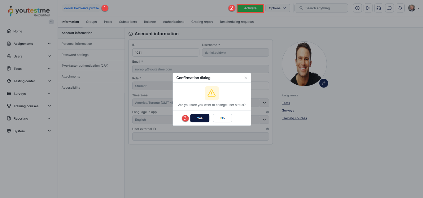 - In the confirmation pop-up, click Yes to confirm the activation.