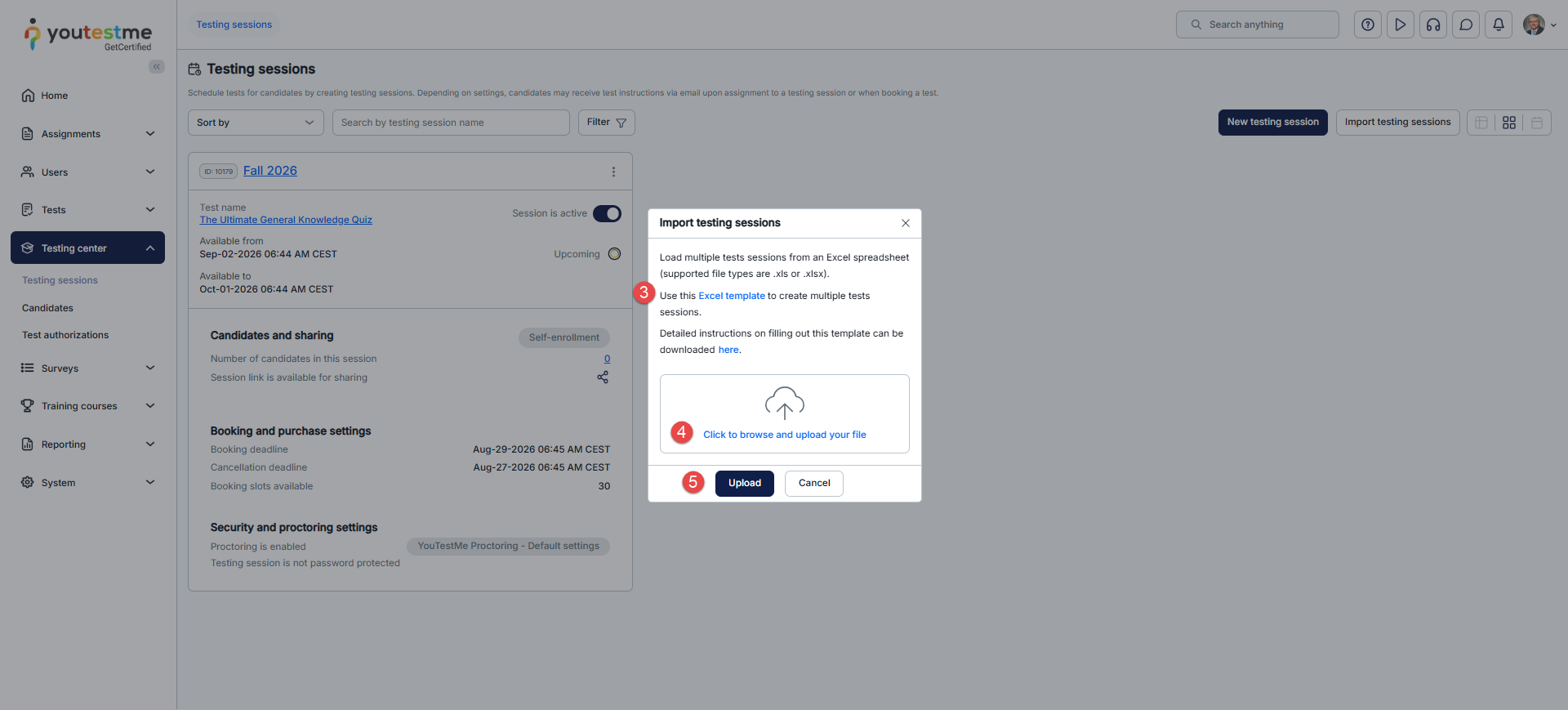 This article explains how to bulk import testing sessions and assign candidates using an Excel template.