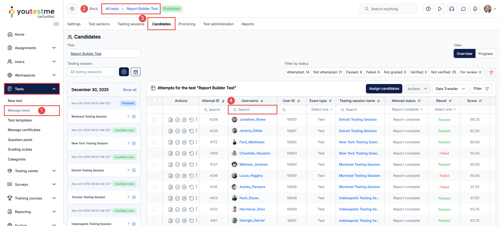 - Use the search field to find the candidate.