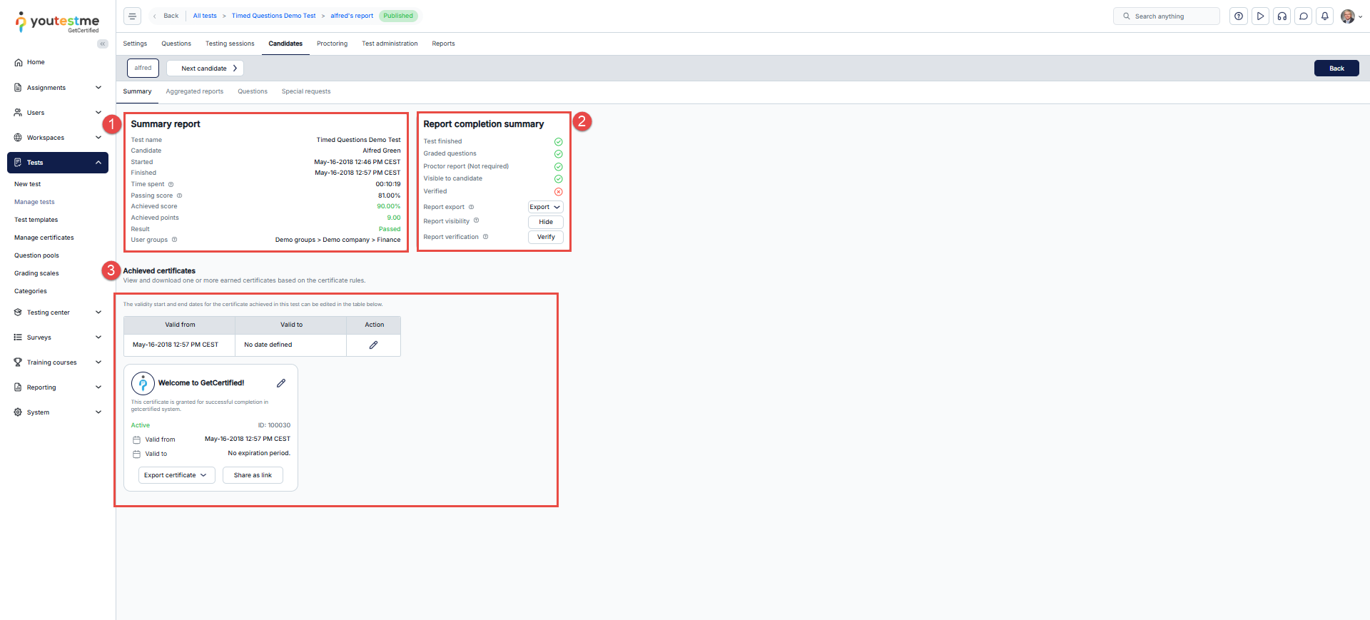 - Report Verification Date: The timestamp showing when the test administrator verified the candidate’s results.