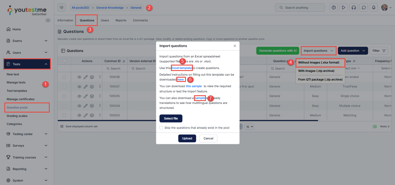This article explains how to quickly and efficiently import questions into the question pool using a predefined YTM Excel format. You can bulk import questions with images (using a ZIP file) and without images.