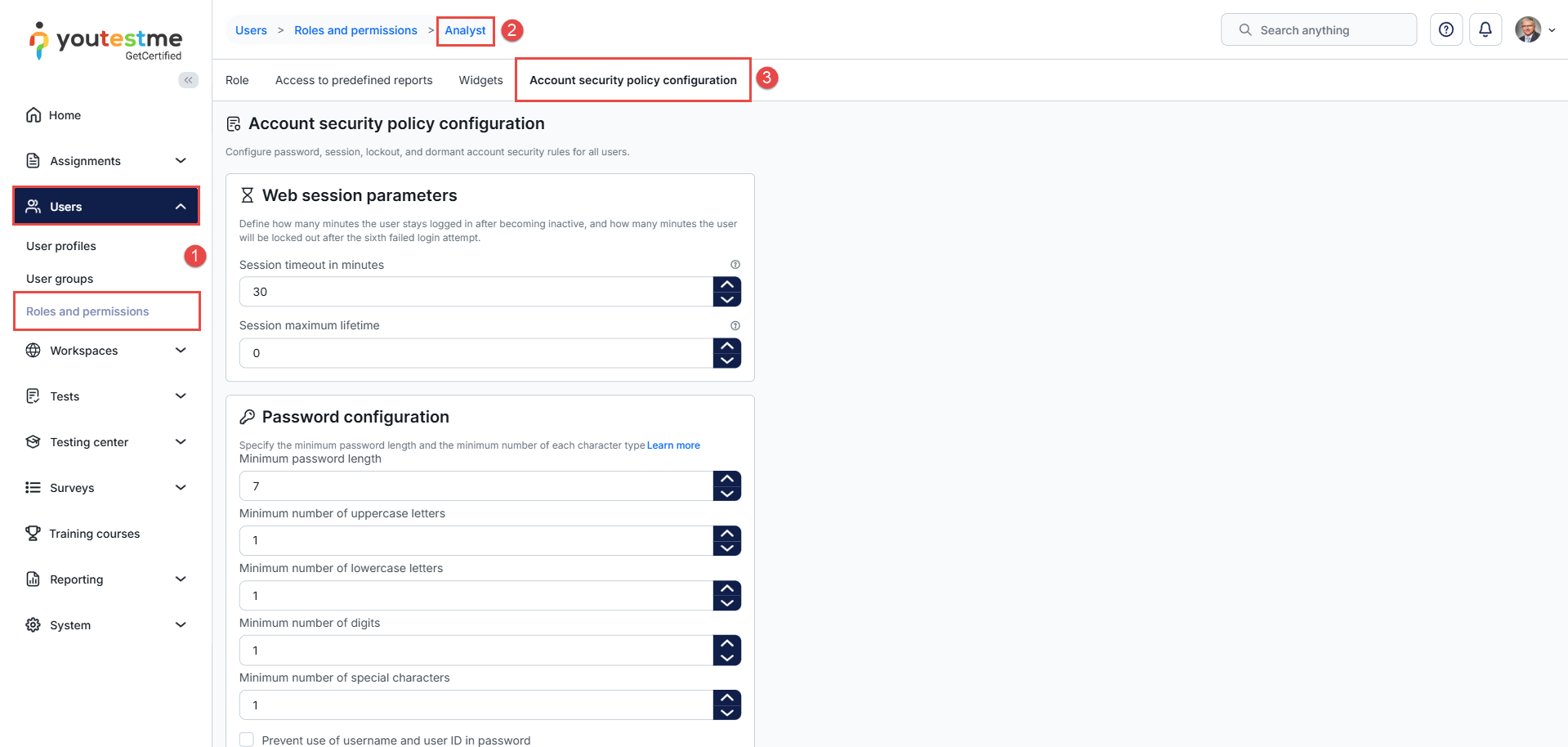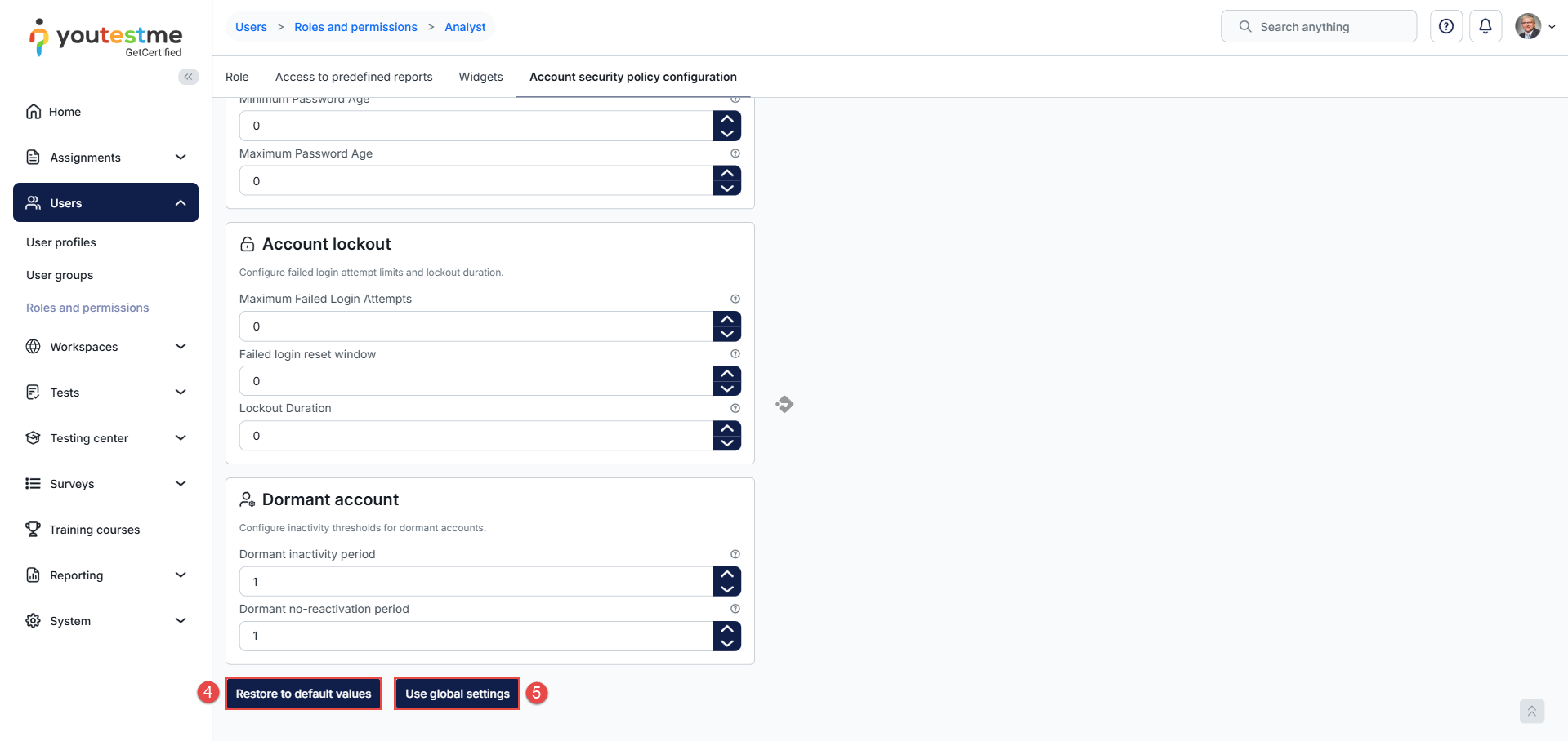 Configuring Account Security Policy at Role Level