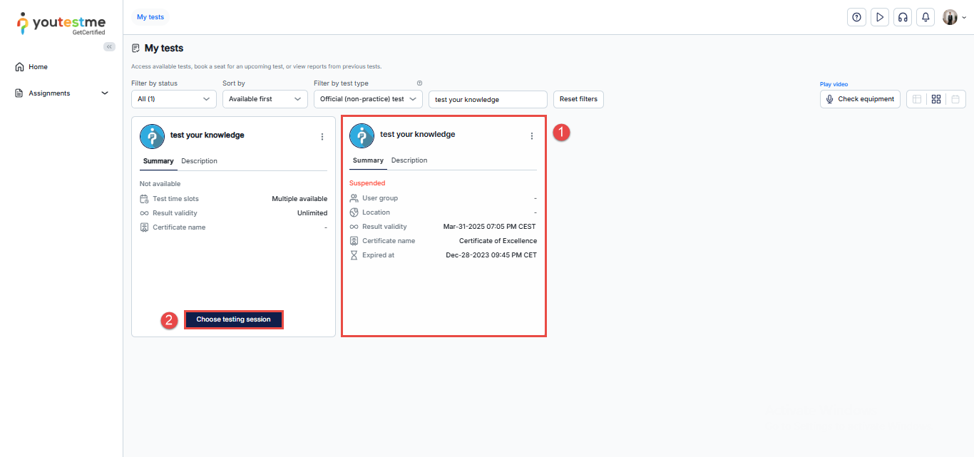 1. Once the validity period of their results expires, the system will automatically suspend any ongoing test attempts.