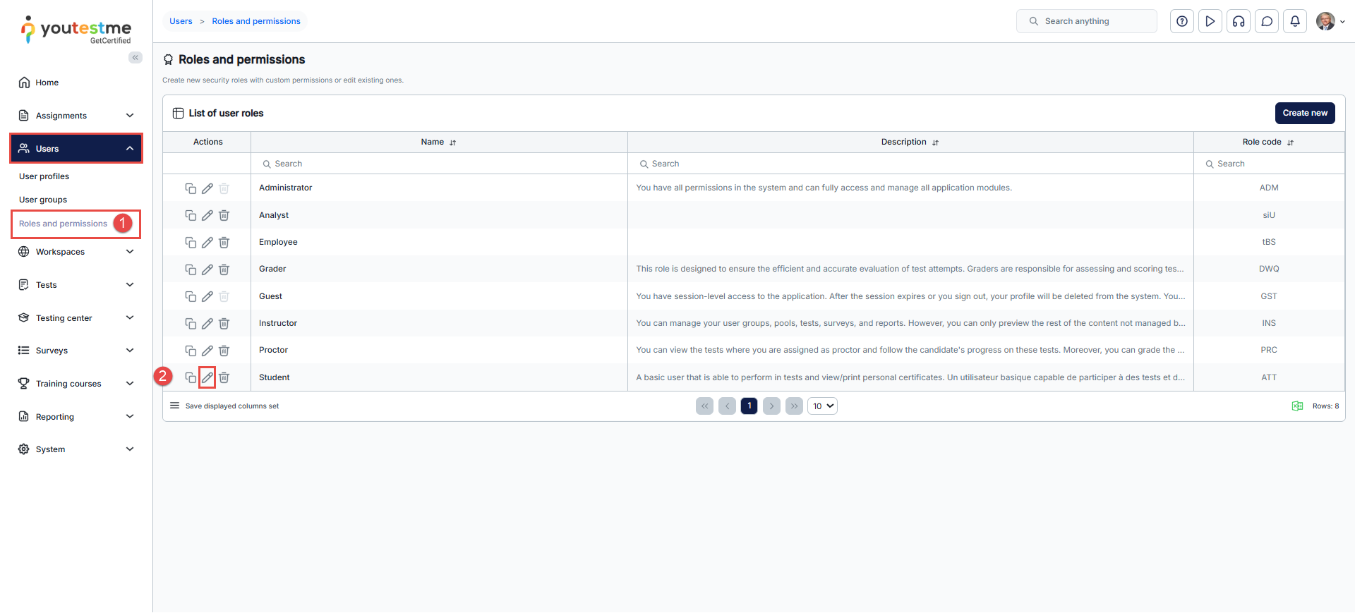 1. From the Users panel in the main menu, navigate to Roles and Permissions.