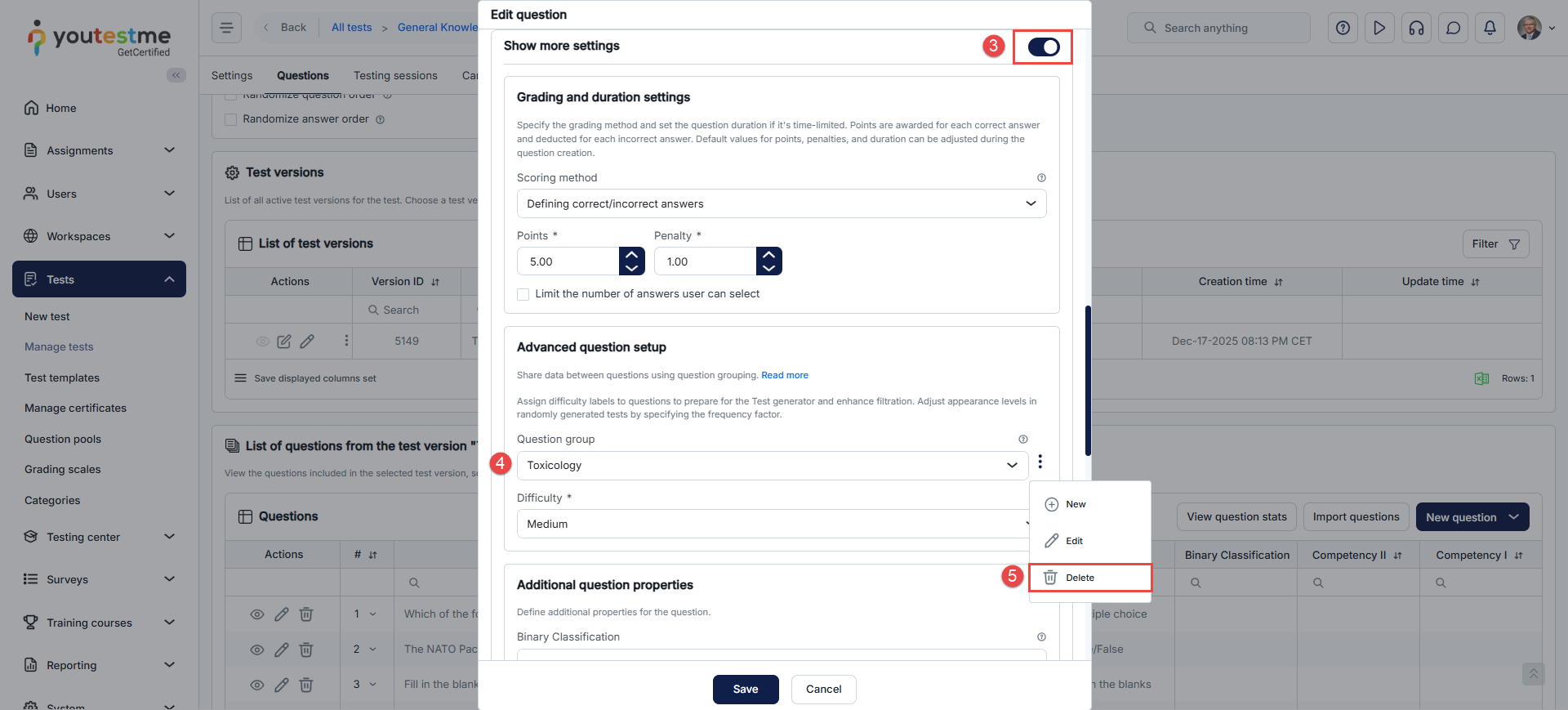 - Click Edit Questions and select the specific question.