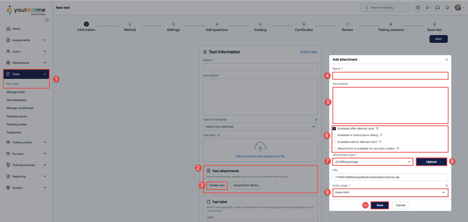 2. In the Test Information step, fill in the basic details and scroll down to the Test Attachment section.