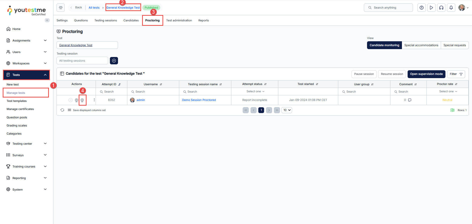4. Watch the recording of the candidate as they review the SCORM package and take the official test.