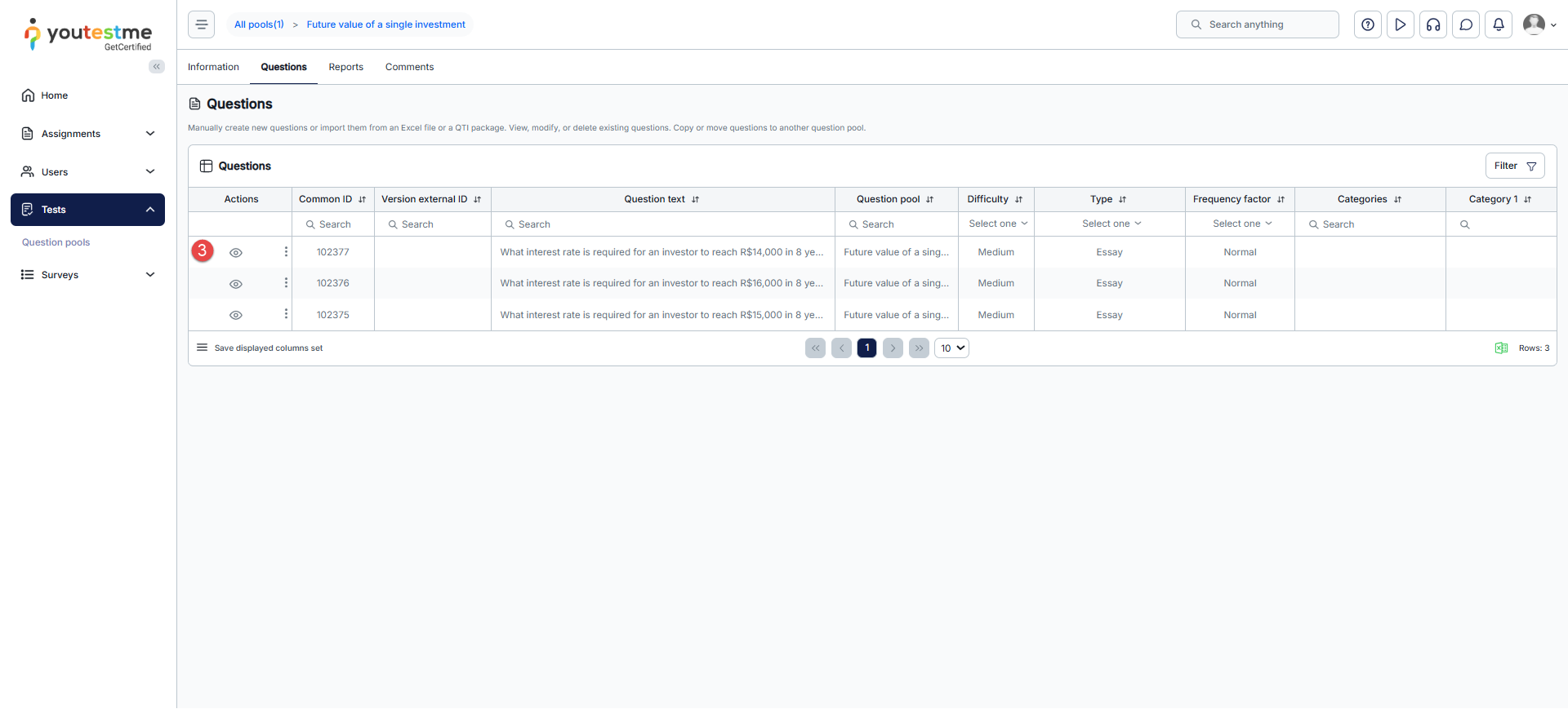 - Within the question pool, they can only view information and preview questions. They won’t have permission to modify or manage any data.