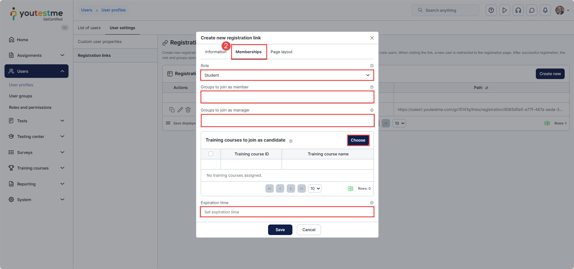 This article explains how to utilize registration links in YouTestMe to streamline user organization by automatically assigning roles and group memberships during registration.