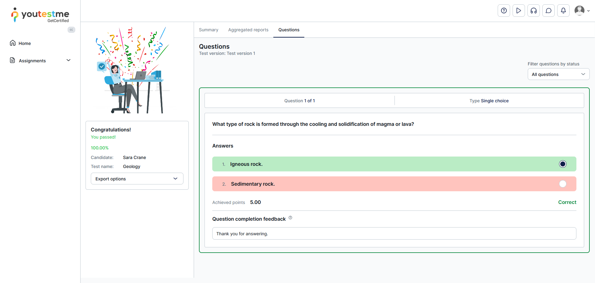 Automatic question feedback will be displayed to all candidates in the Personal Report.