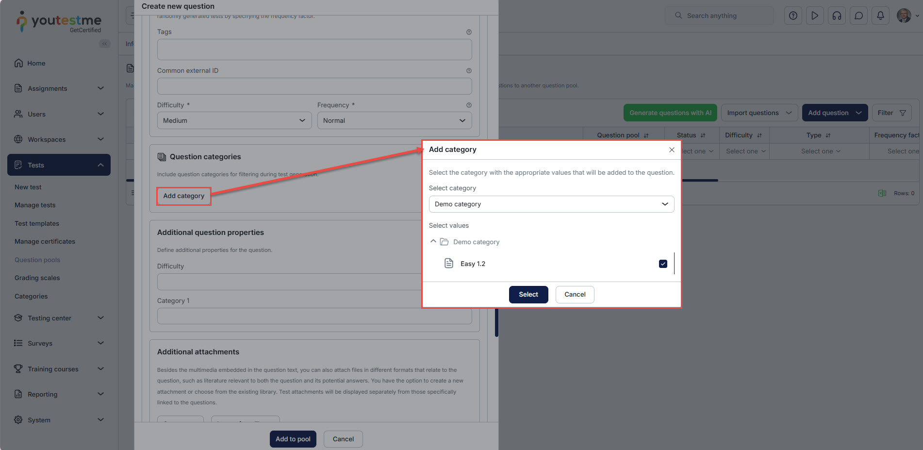 - In the main menu, navigate to Tests and select the Question Pools module.