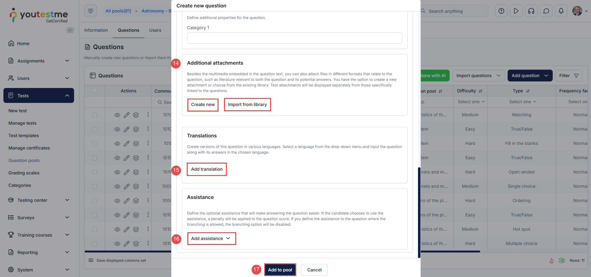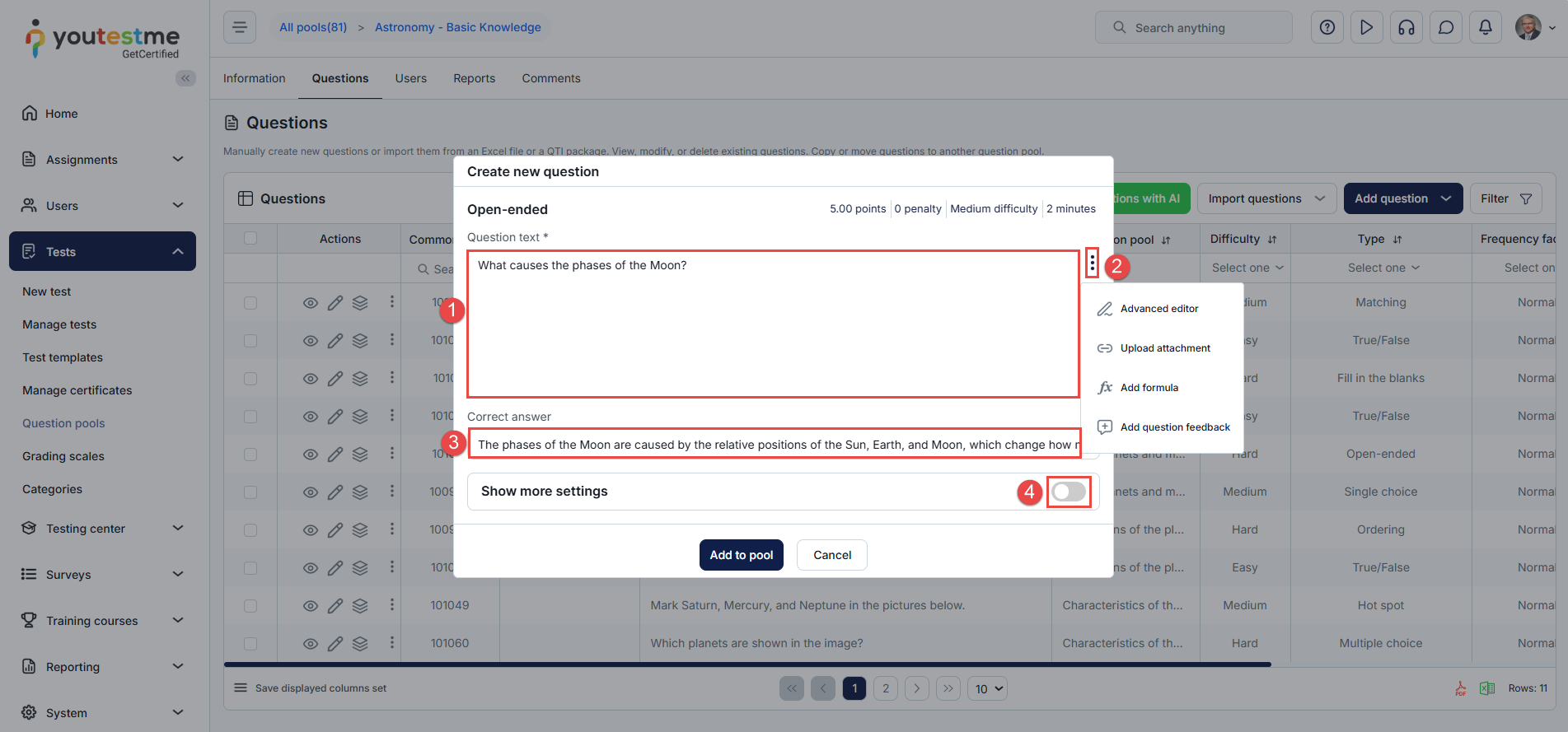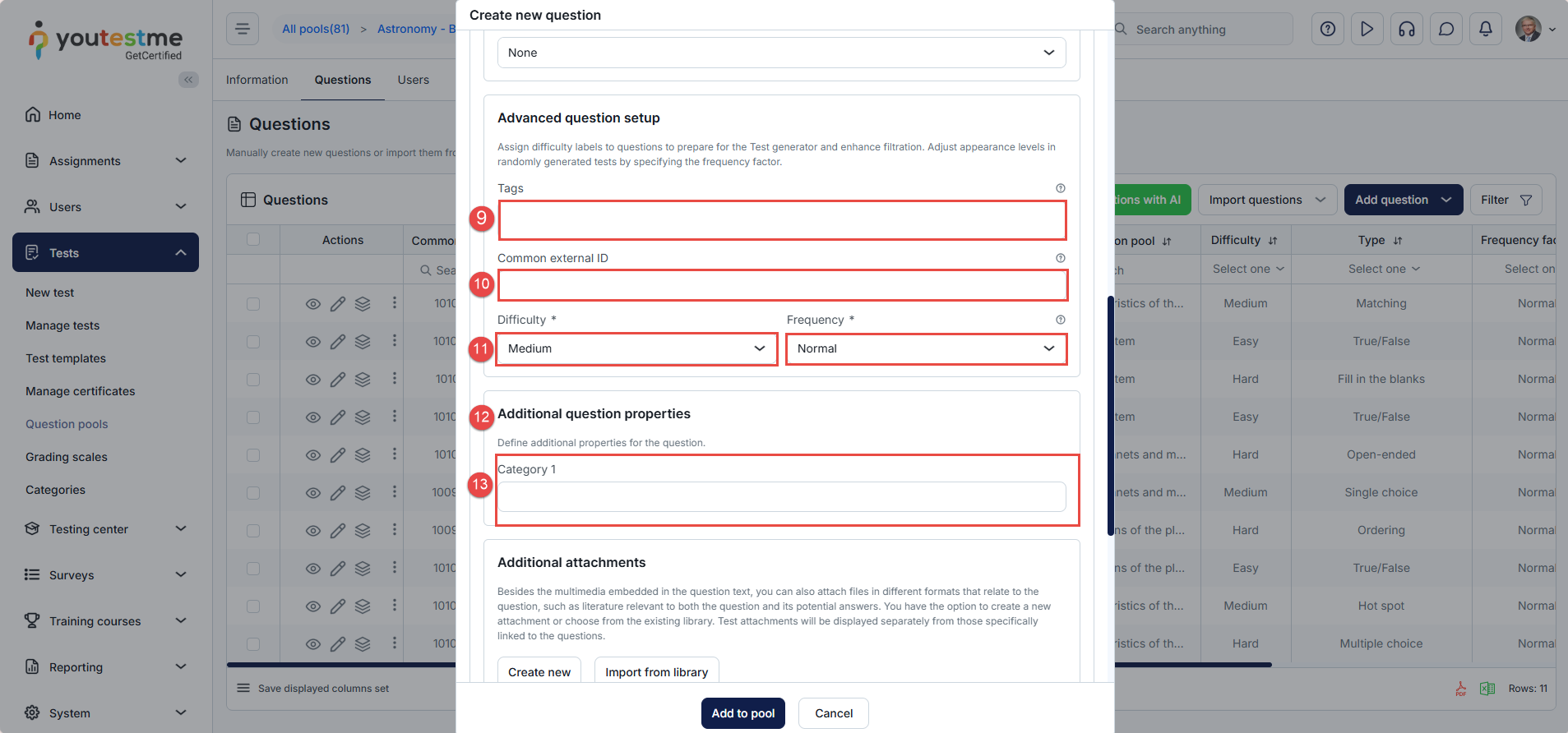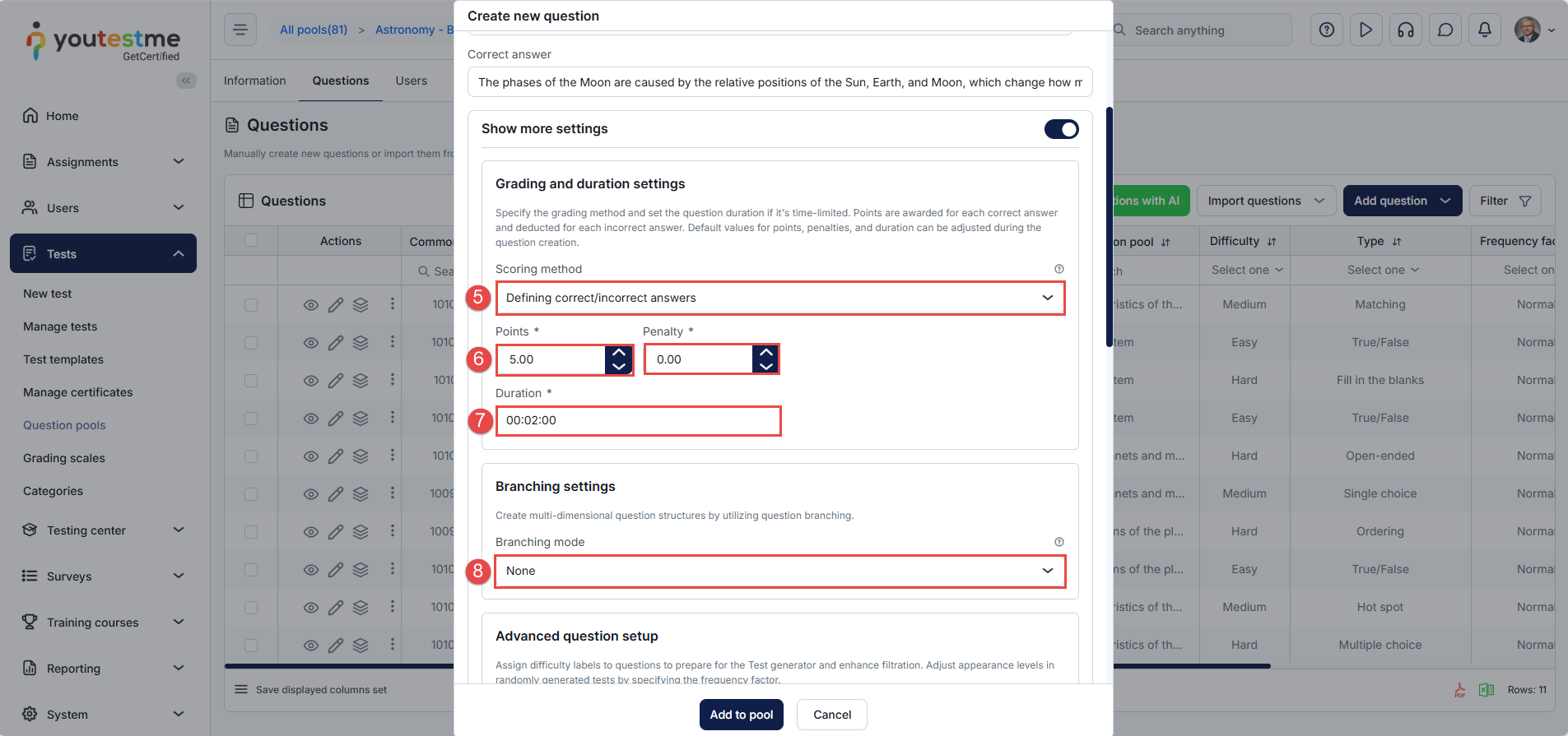 - Once all settings are configured, click the Add to Pool button to save the question.