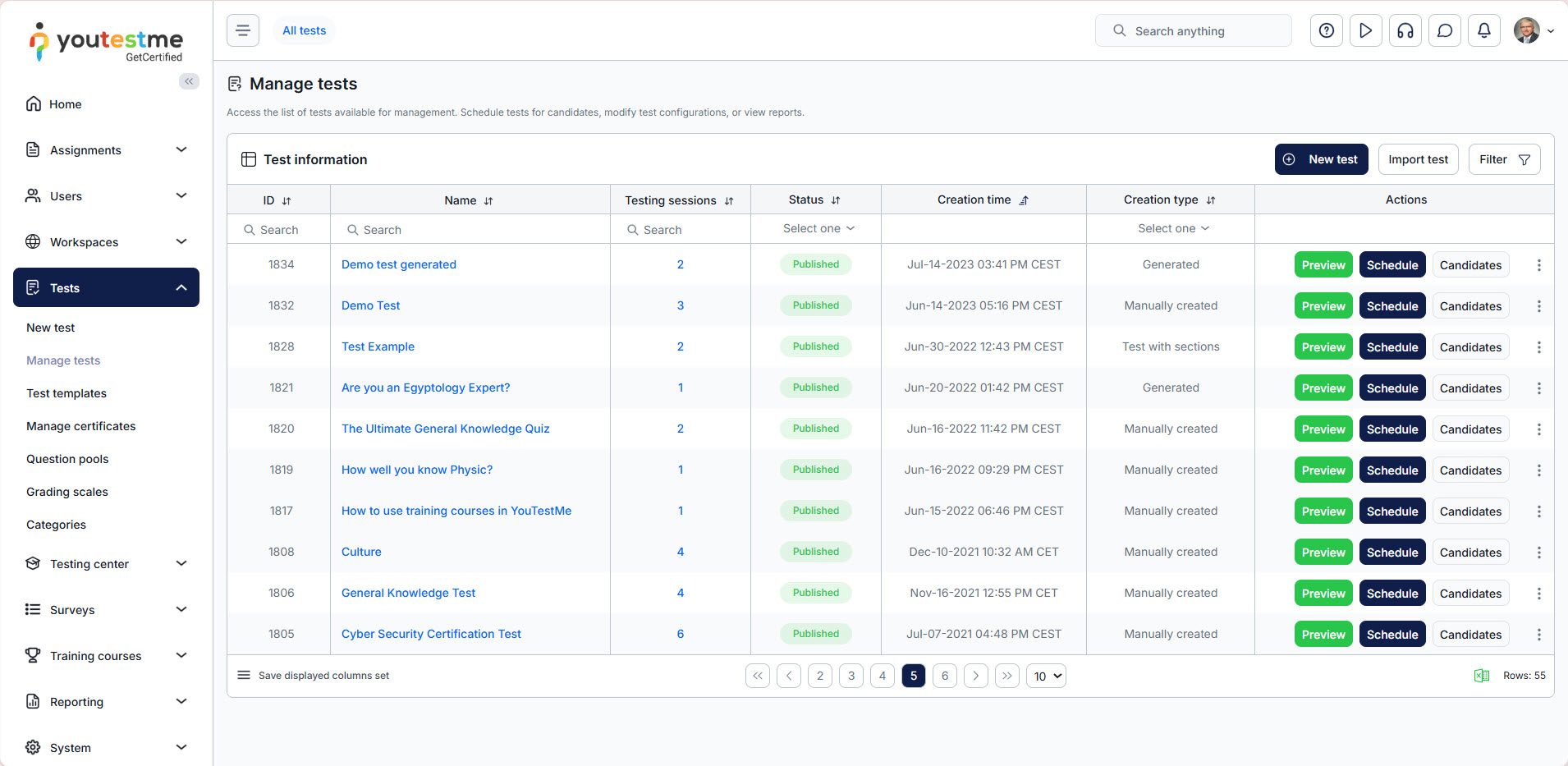 - Select the Tests tab in the main menu and select Manage tests.