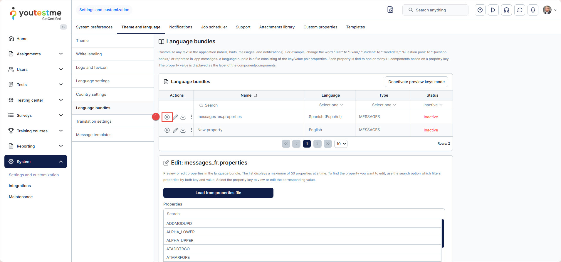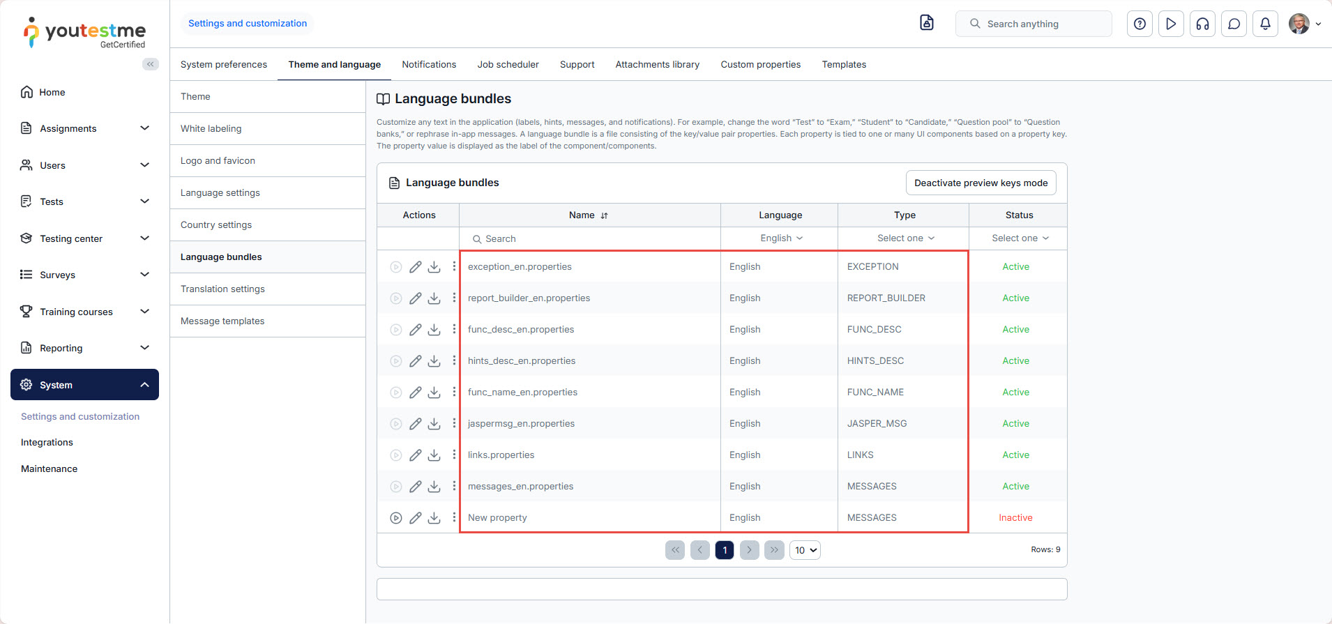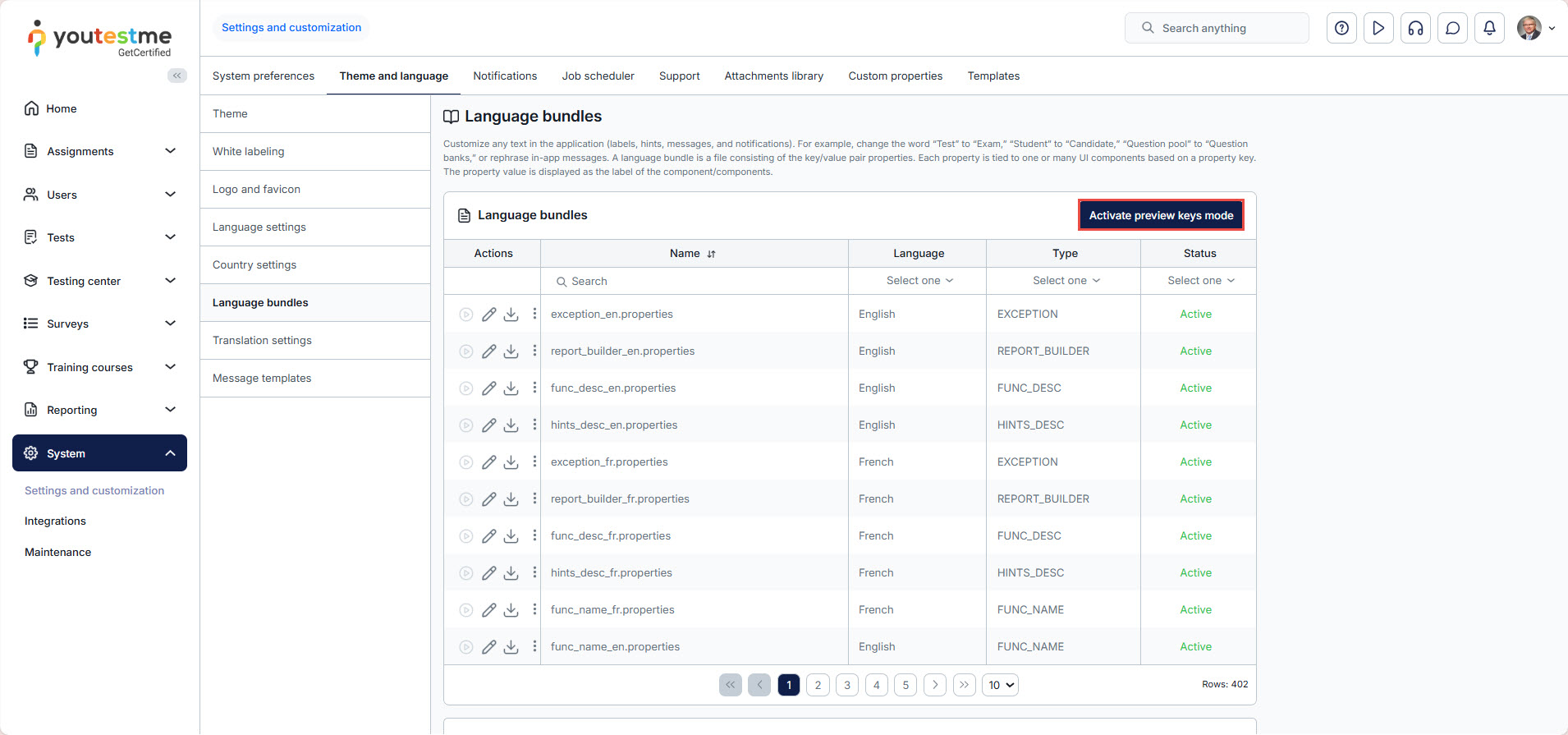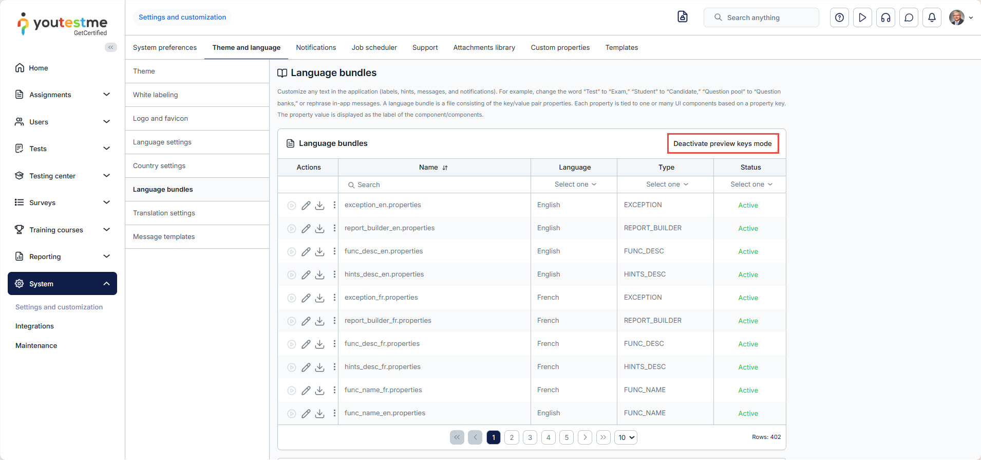 To turn off the preview keys mode, click the key icon again. To completely deactivate this feature, click the “Deactivate preview keys mode” button, available in the Language bundles tab.