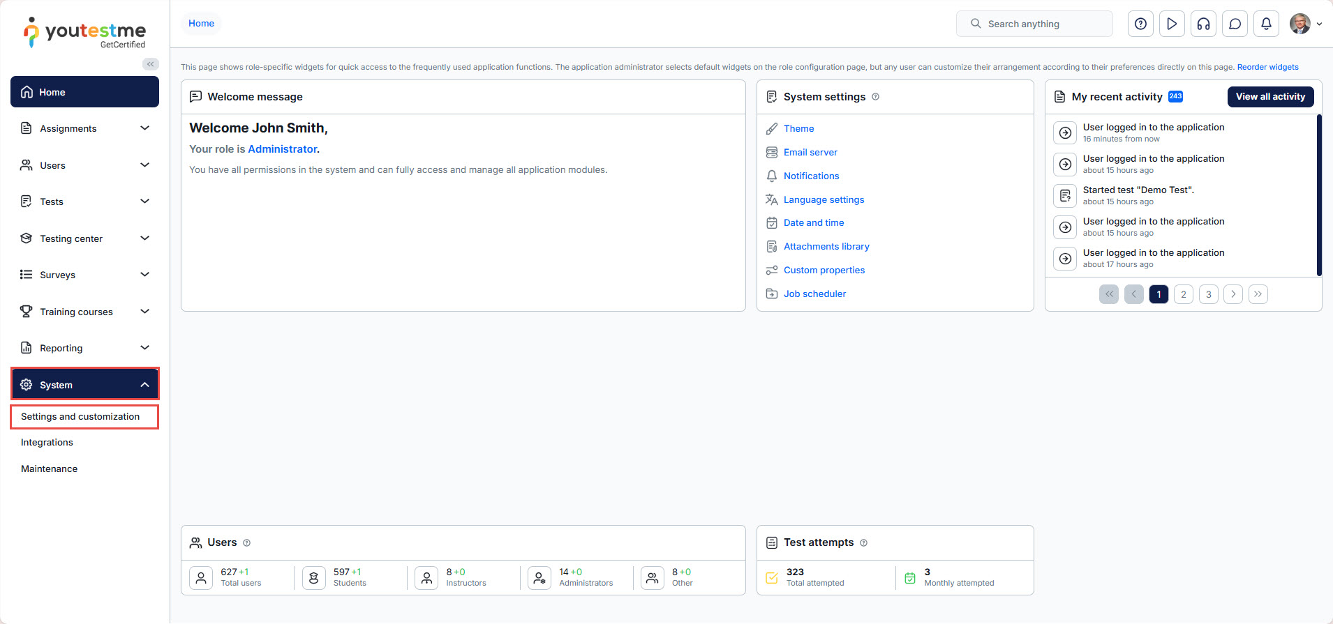 To access the Language bundles settings, navigate to the System module in the main menu and select the Settings and customization option.