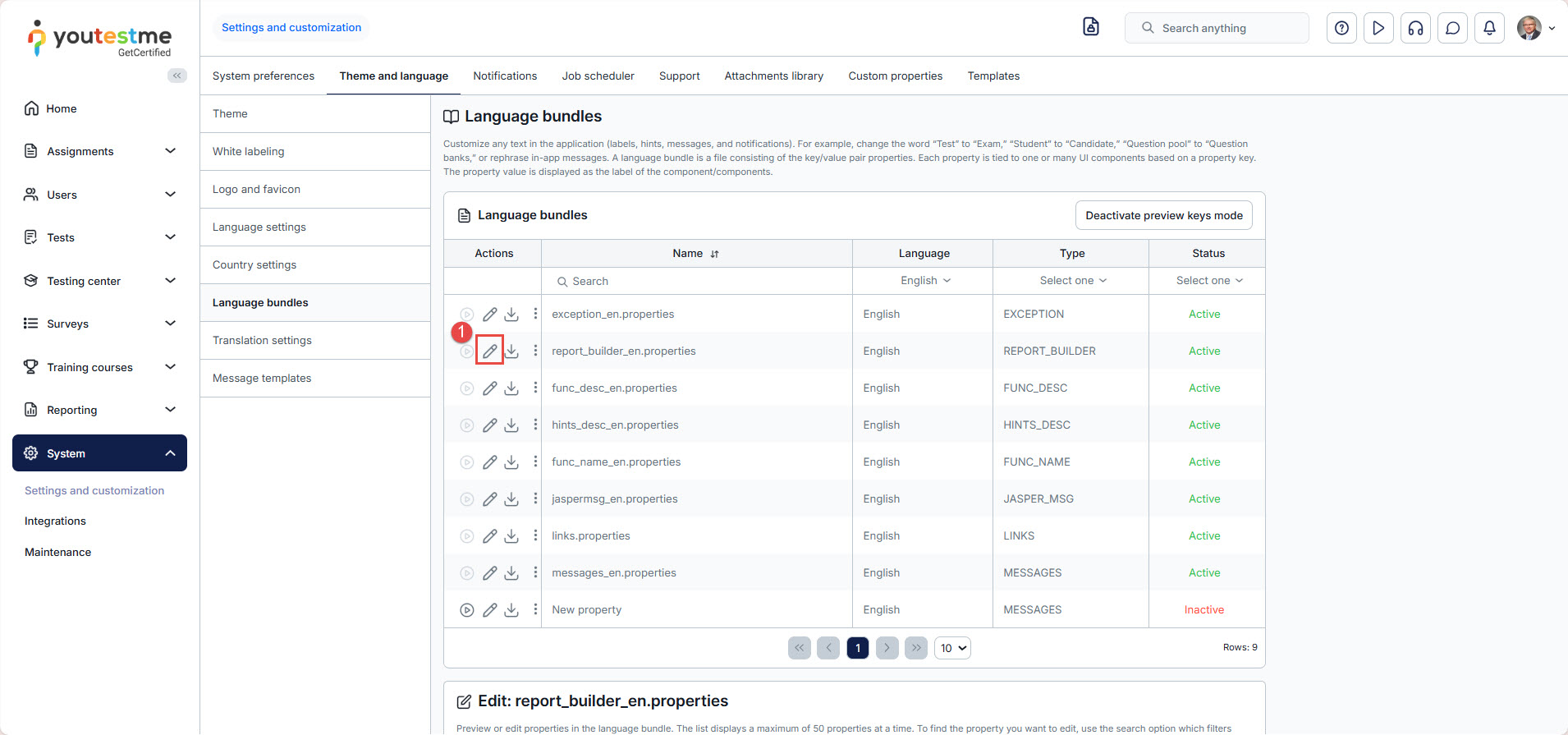 - Select the Actions option and the Edit option for the language bundle based on which you want to create a new one.