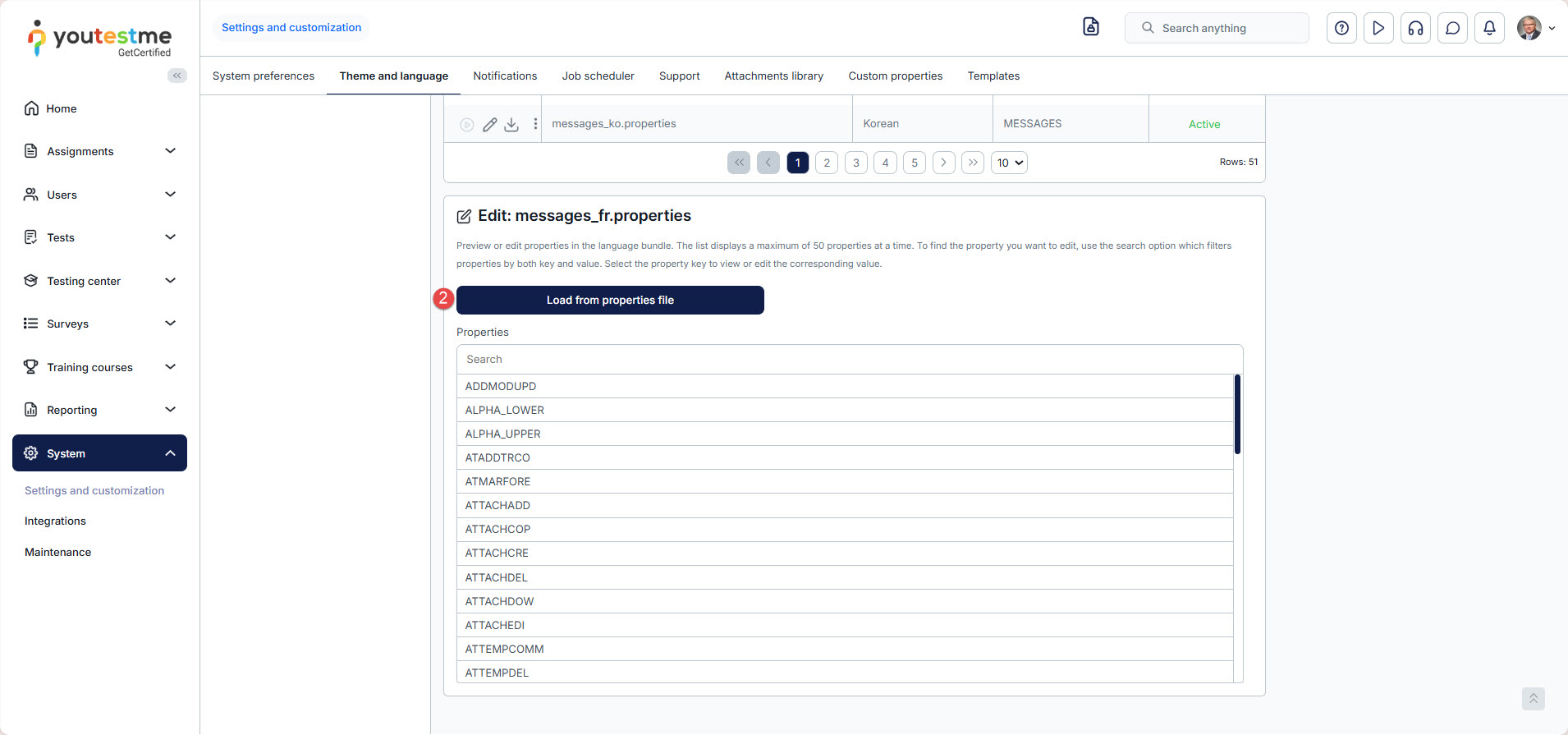 Navigate to the Theme and language tab, then select the Language bundles option.