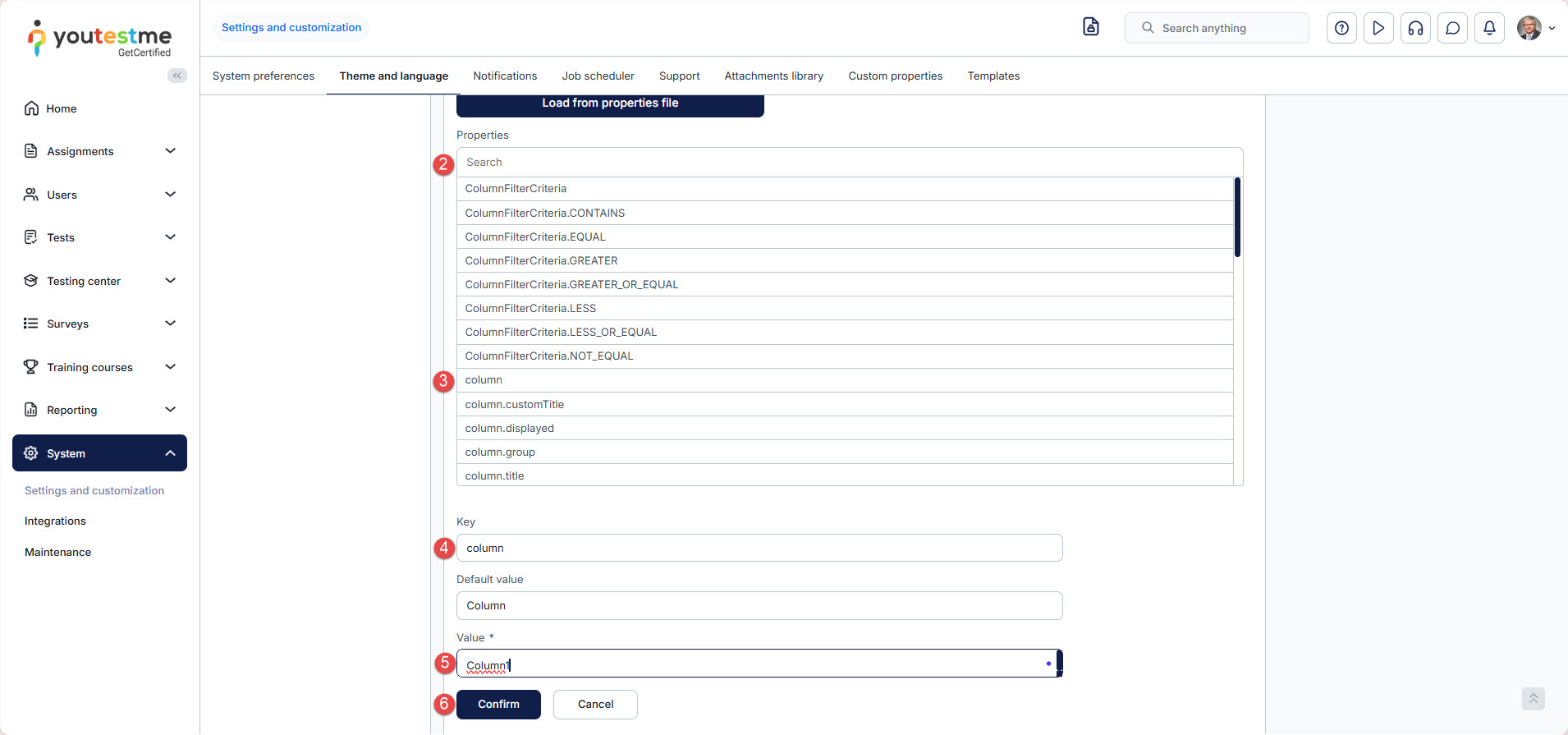 Note: The downloaded file will be saved in .properties format. - Load the file by clicking the Load from properties file button. The Choose file dialog will appear. Choose a modified .properties file and confirm your choice.