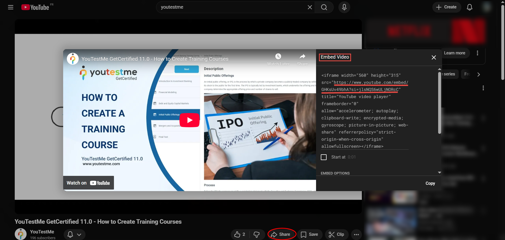 Find the video you want to customize and copy its key.