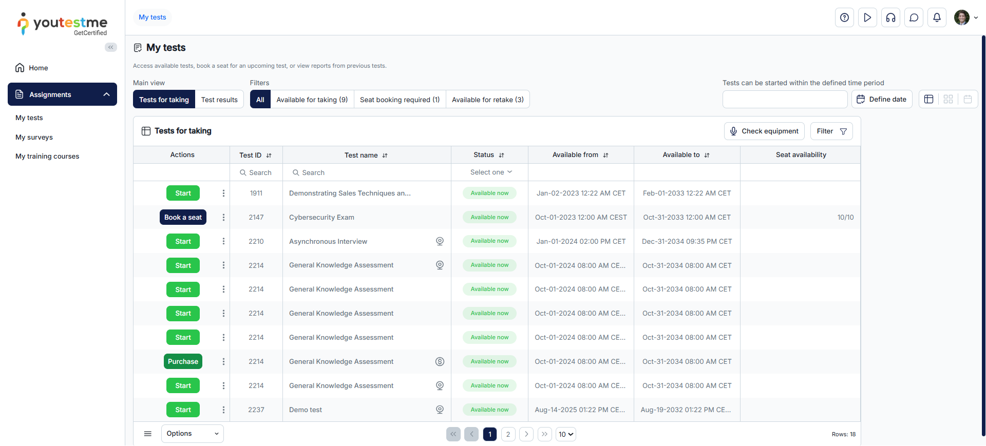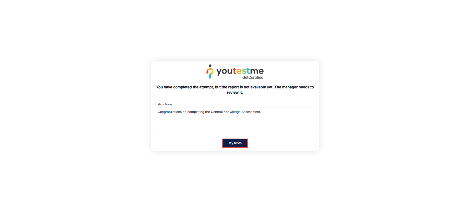 In this case, the candidate is redirected to the My Tests page.