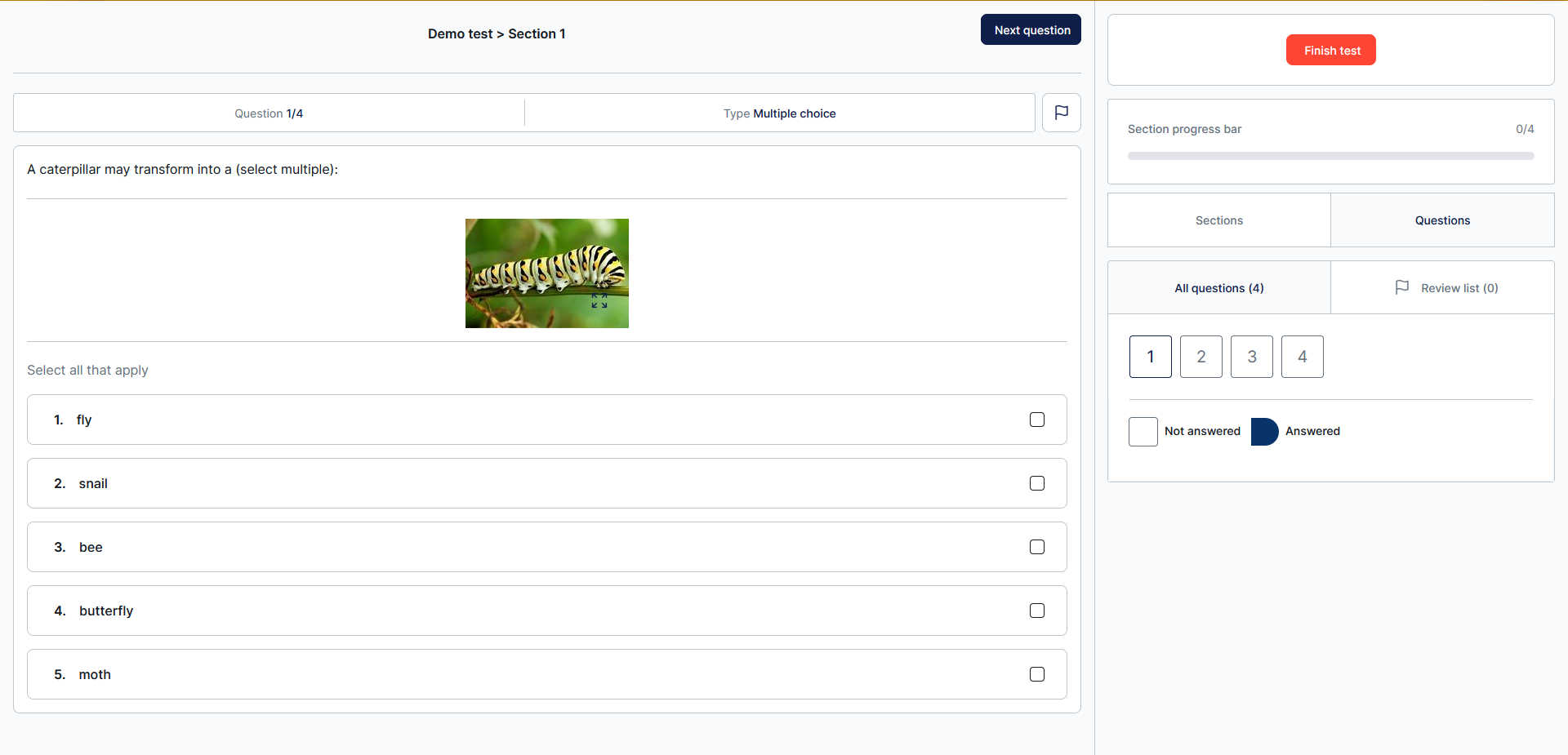 - Test creators can customize navigation settings, allowing or restricting the ability to pick questions.