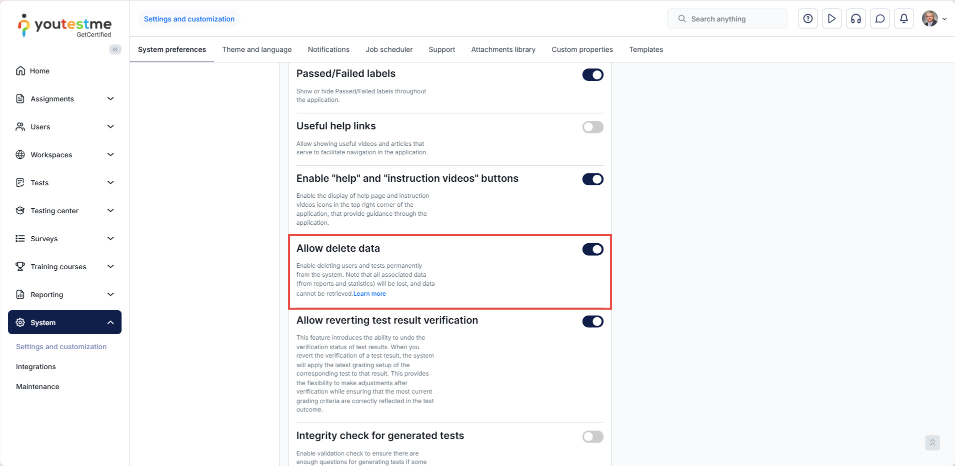 To permanently delete a user account in the YouTestMe platform (sometimes referred to as deleting or deactivating a YouTestMe account), follow the steps below: