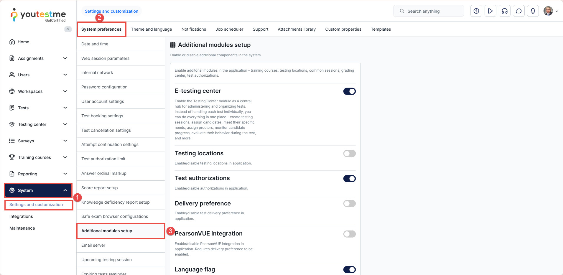 - Select the Additional Modules Setup tab.