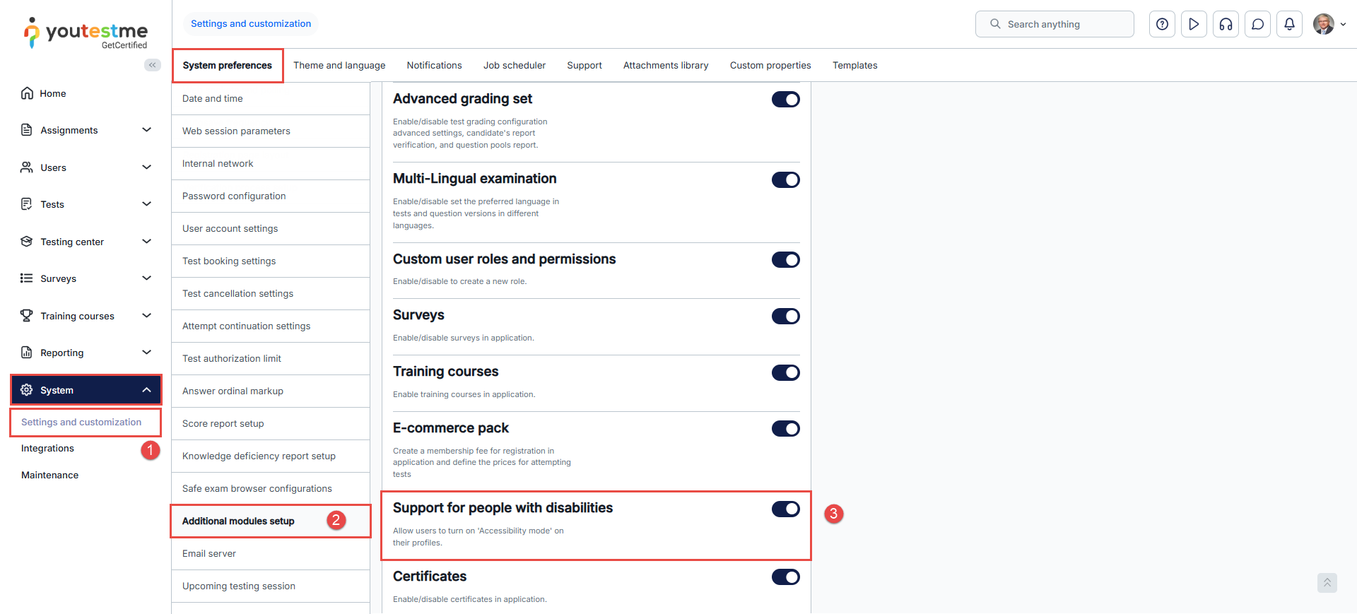 - Select the System preferences tab and then the Additional modules tab.