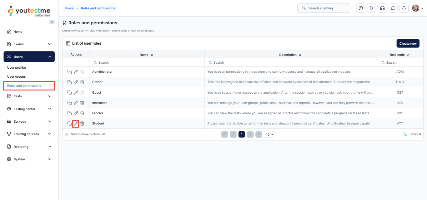 In the Actions column next to the selected role, click the Edit icon.