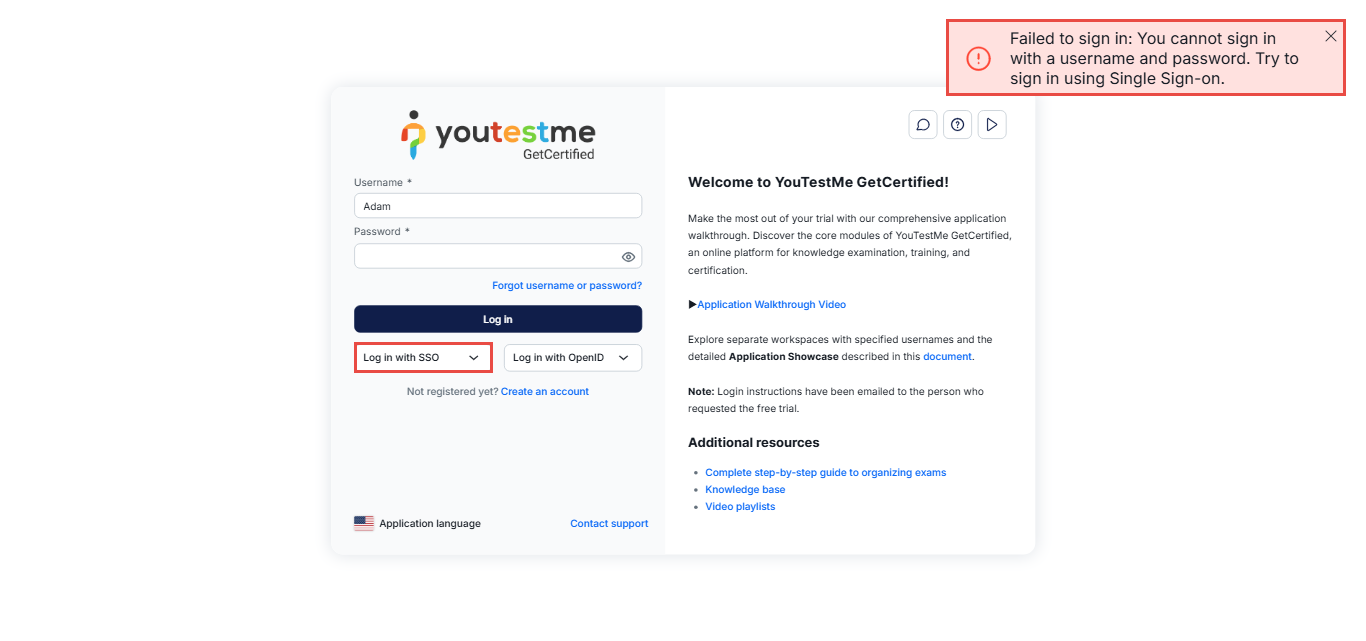 Ensure that the Single Sign-On (SSO) option is enabled
