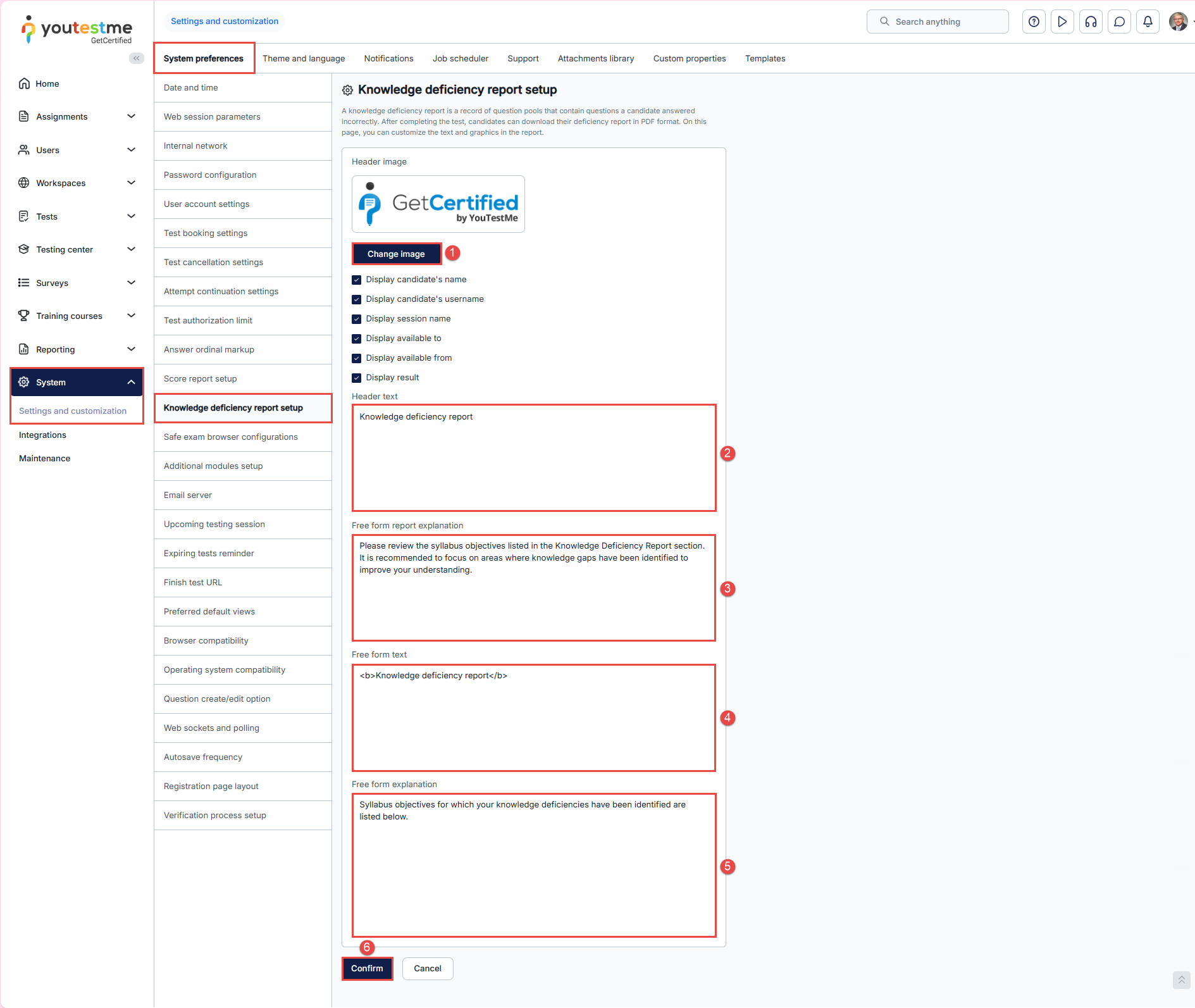 Enabling the download of the “Knowledge deficiency report” in the test