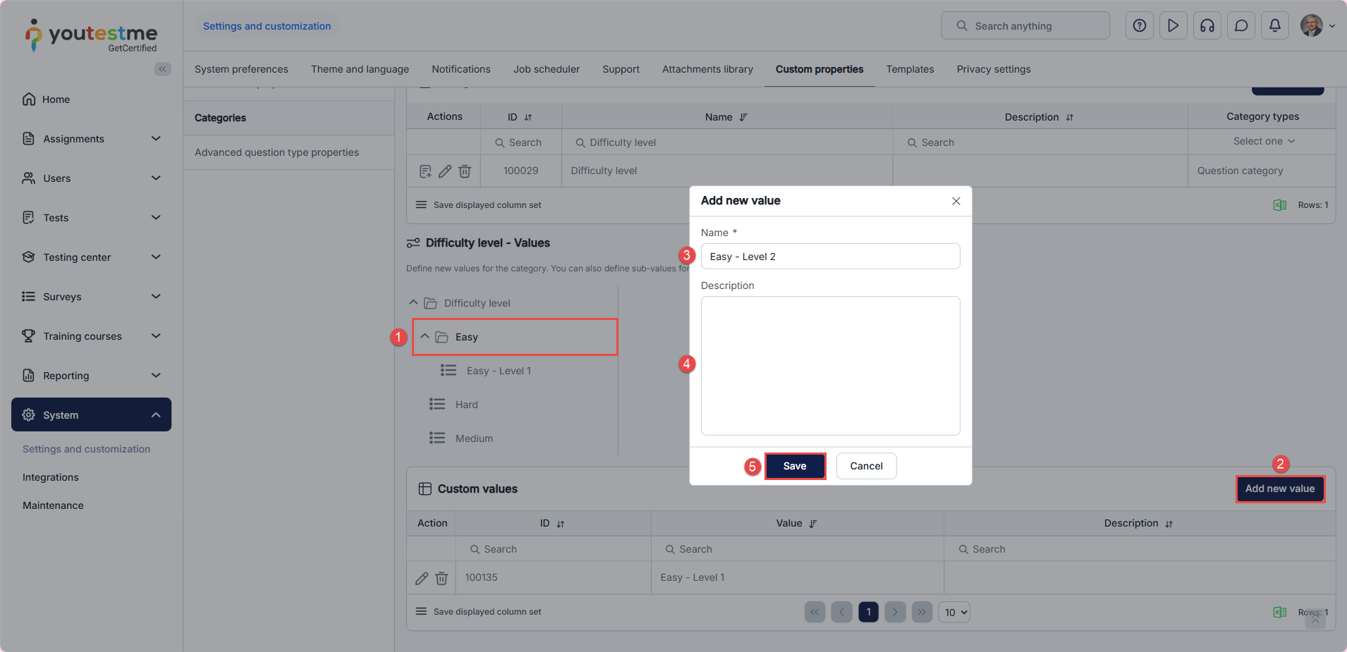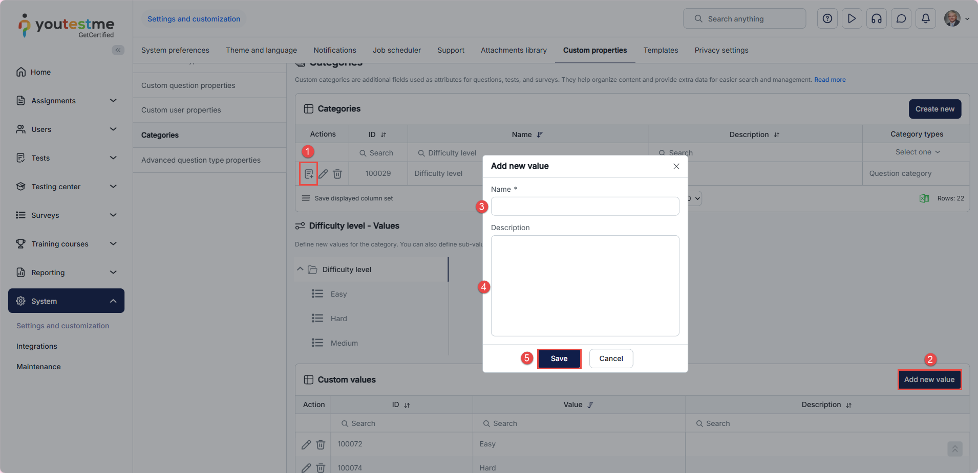Generating tests based on question categories allows administrators to create dynamic, flexible, and targeted tests by automatically selecting questions that meet predefined criteria. Instead of manually choosing individual questions, this option enables the system to generate test content according to custom categories and values, such as skill level, topic, language proficiency, or difficulty.