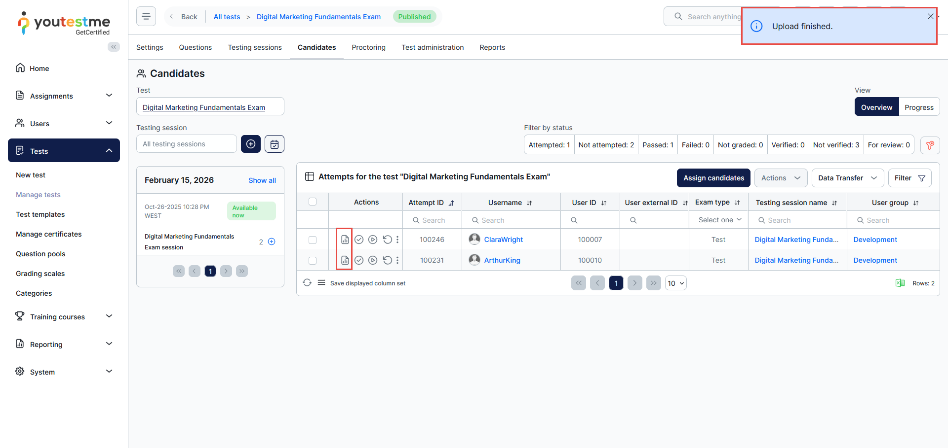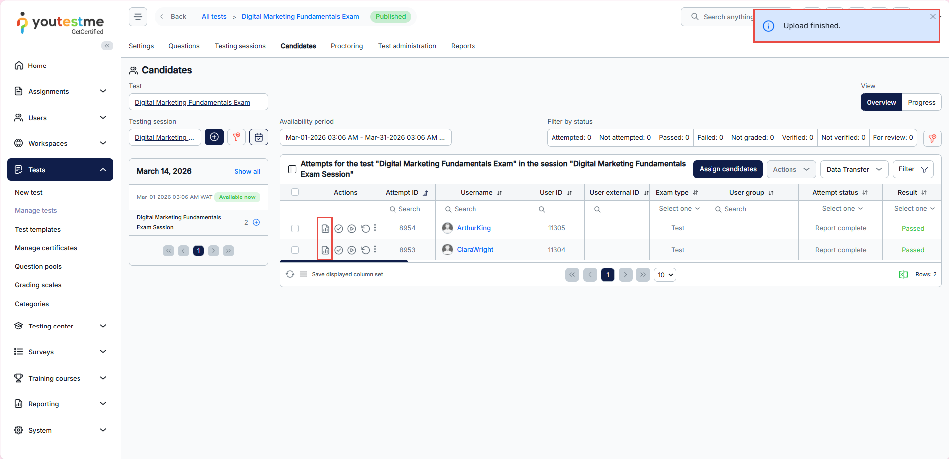 After uploading, you can see the reports of the candidates whose results you have added.
