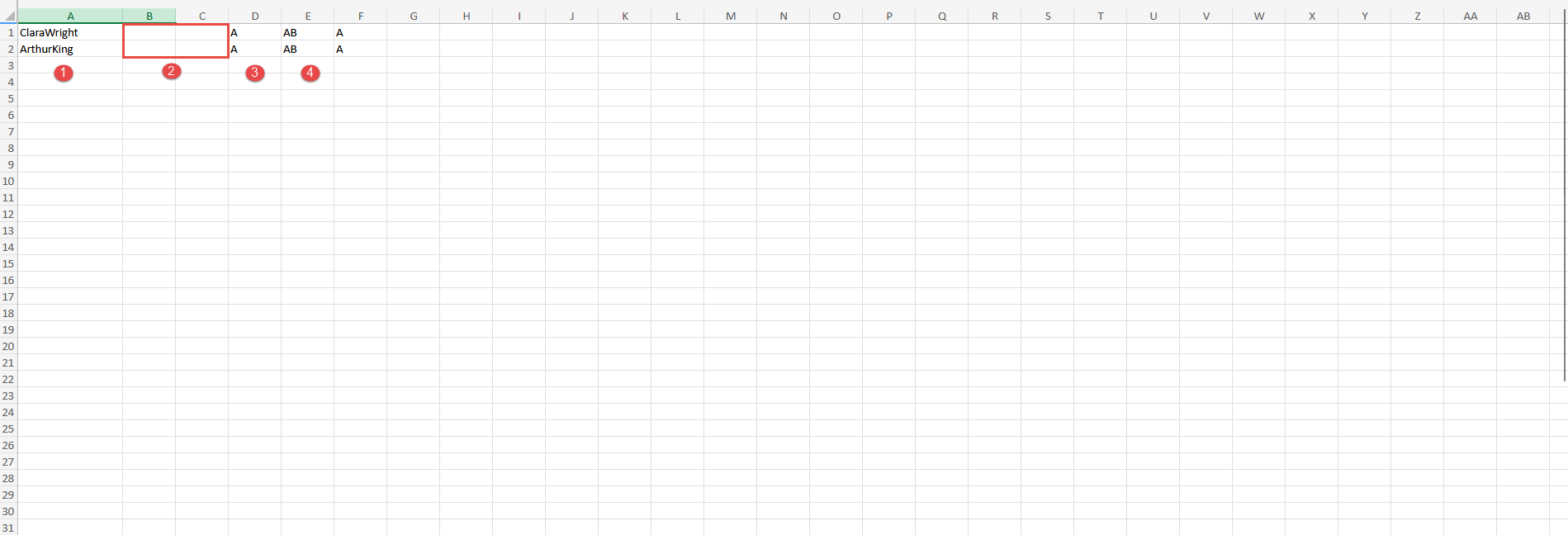 1. In the first column, enter the usernames of all candidates who took the test.