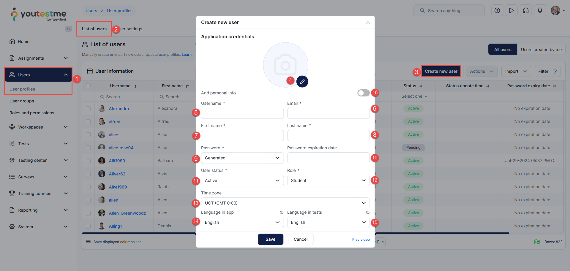 Inactive – Prevents the user from logging in until reactivated by a user manager. Inactive users are hidden from the user list unless the “Show inactive users” filter is enabled, and their test results are not visible in the application or included in statistics.