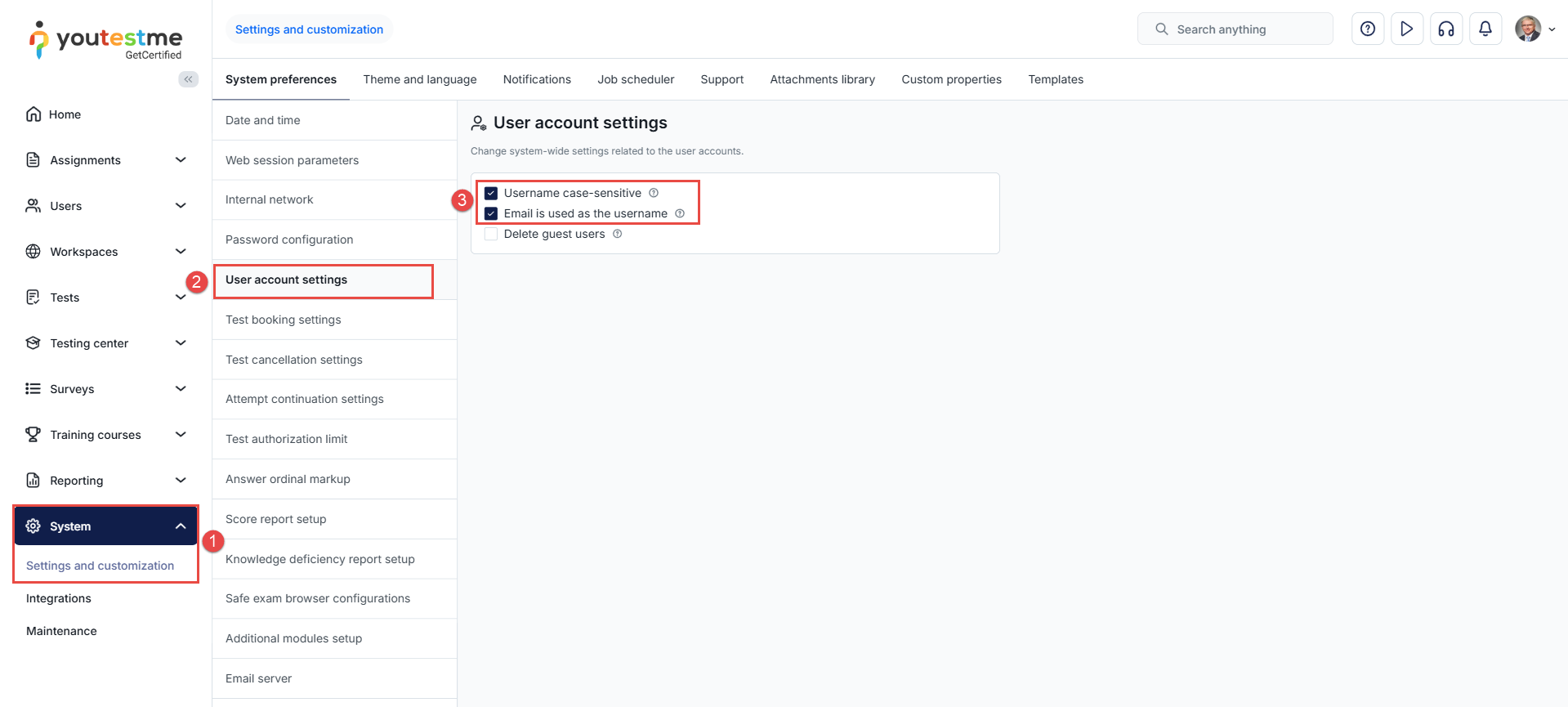 To customize the user account settings, follow these steps: