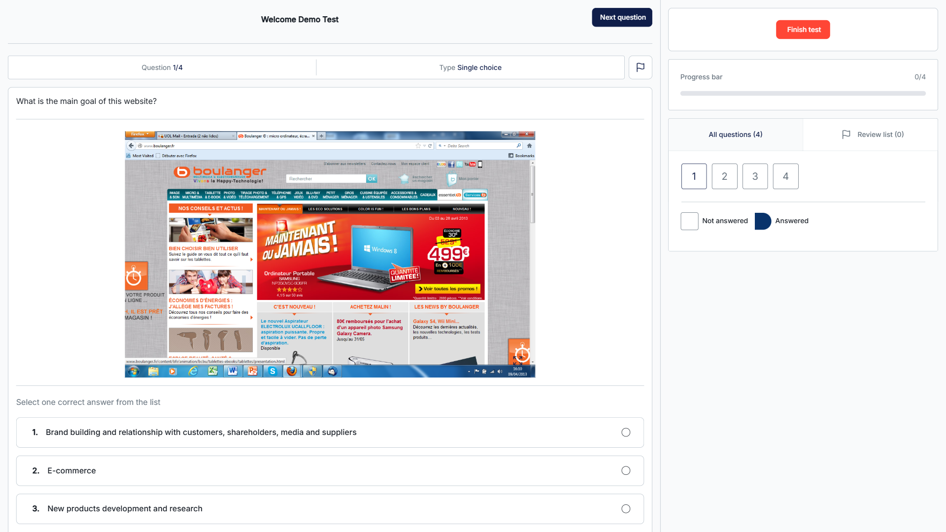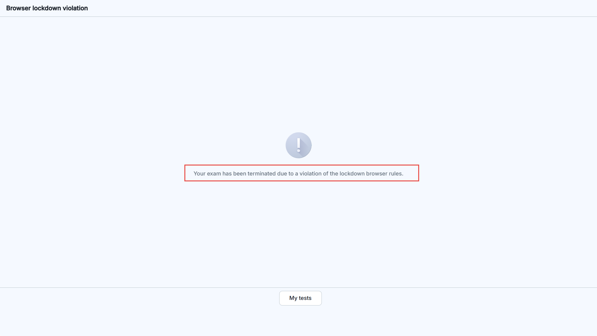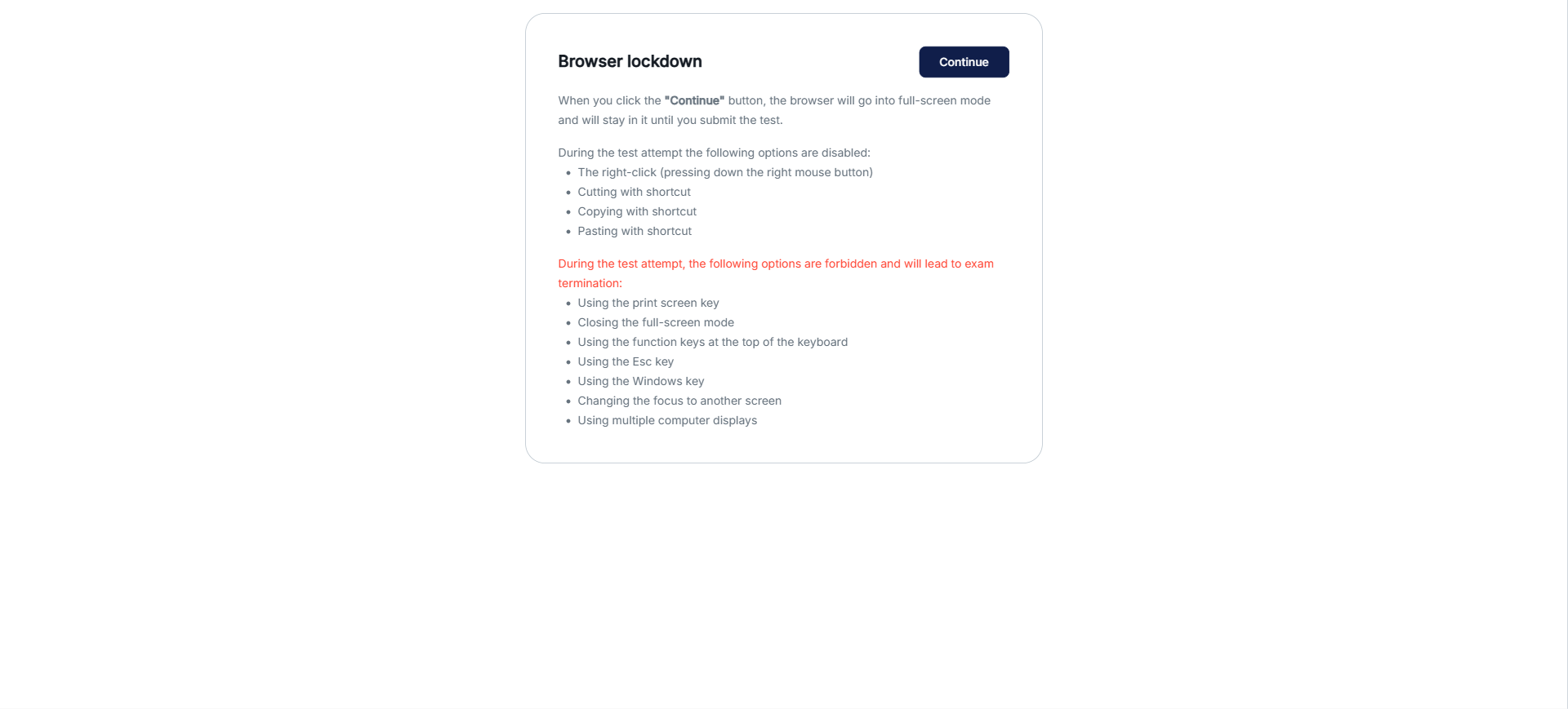 At the start of the test, candidates will be informed of the browser lockdown functionalities and the rules to prevent violations.
