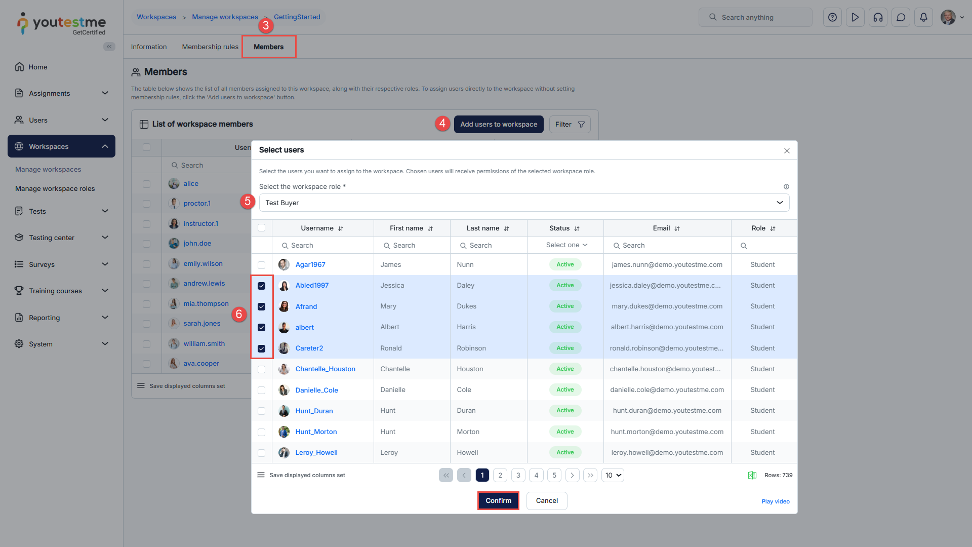 If you prefer to assign users to a specific workspace after creation, you can do so manually via the Members tab, as explained in Method 1 above.