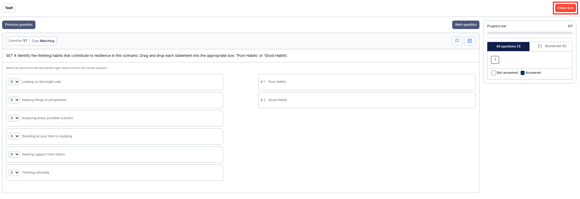 You will be redirected to the test view, where you can see how the test will be displayed to candidates. To exit this view, click the Finish test button.