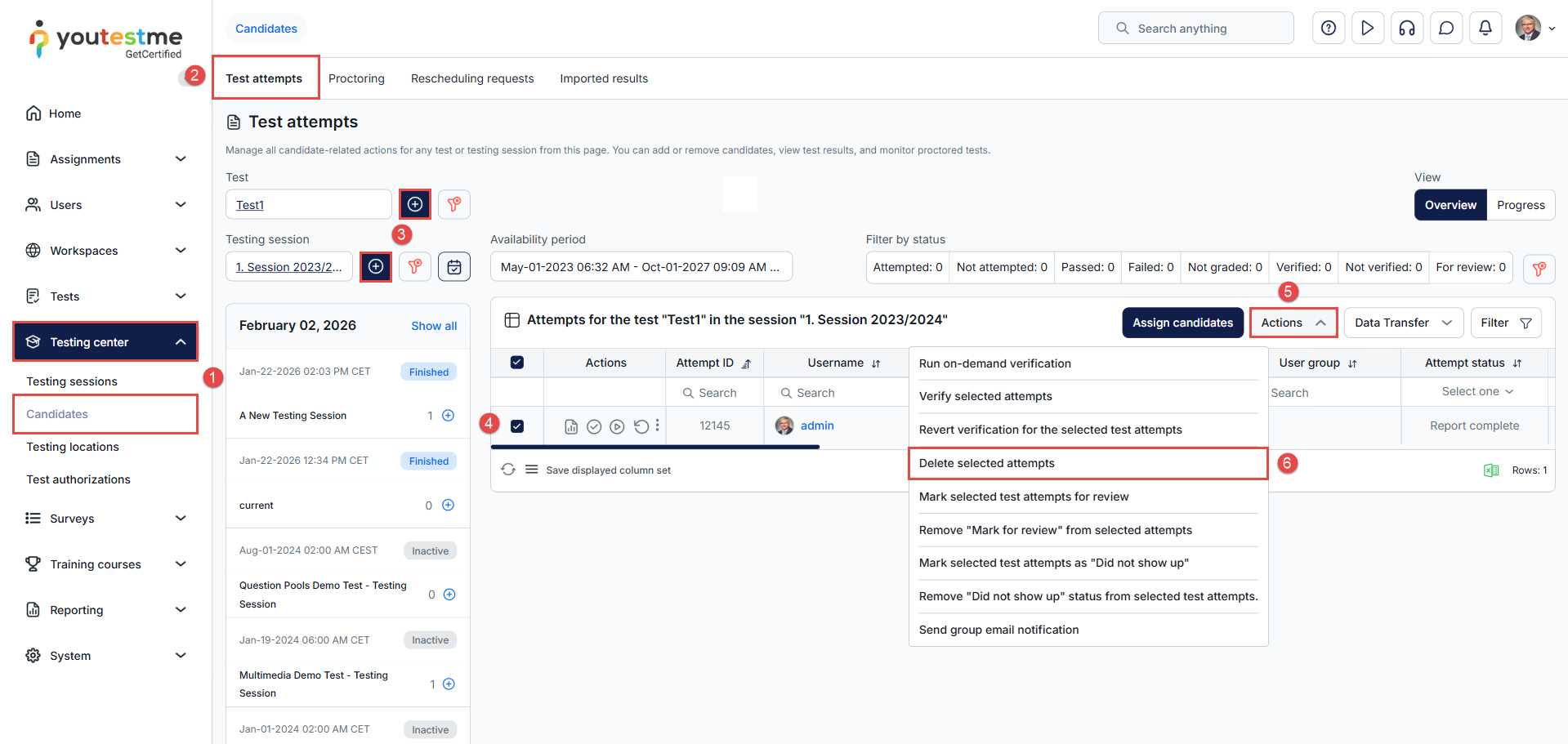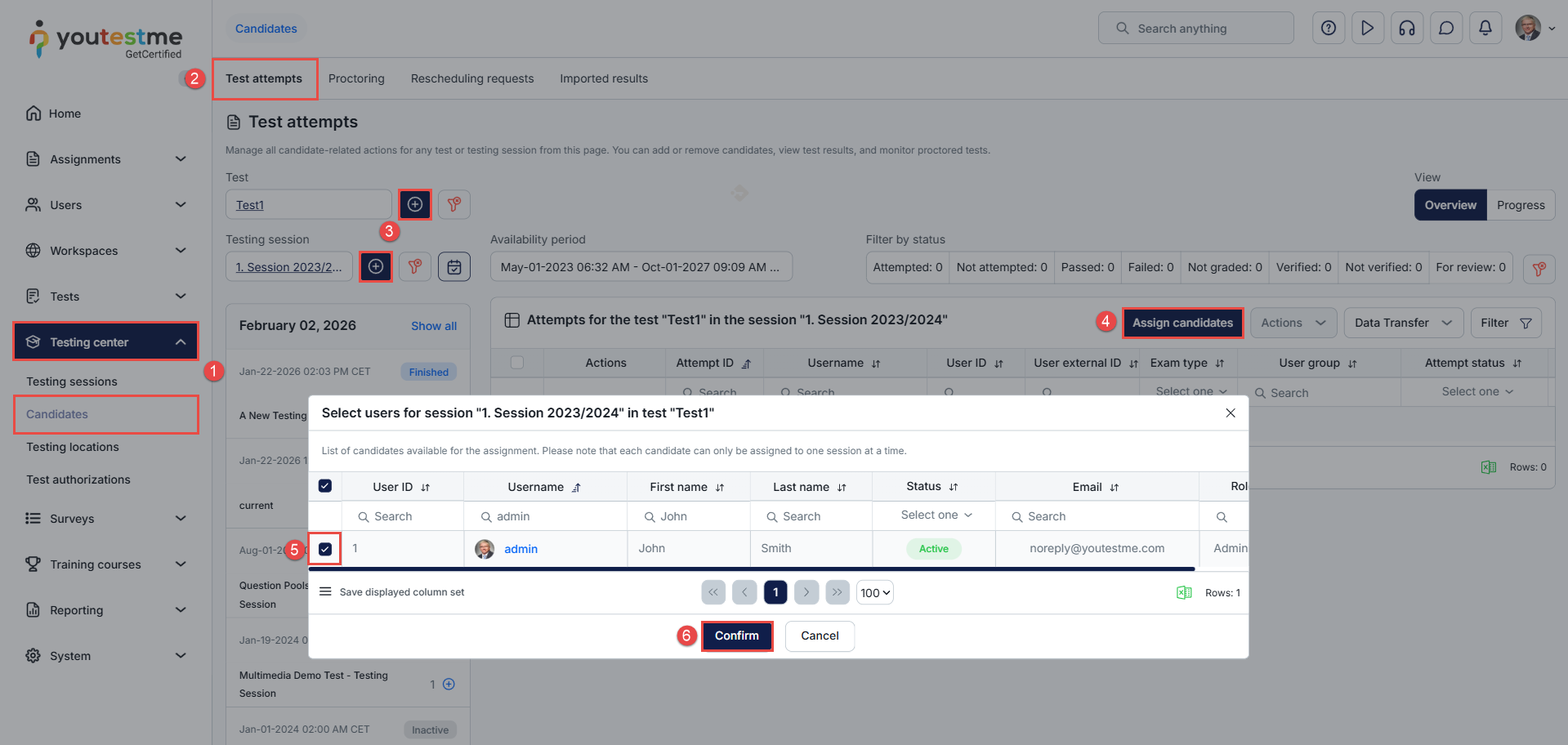 - In the main menu, navigate to the Testing center > Candidates.