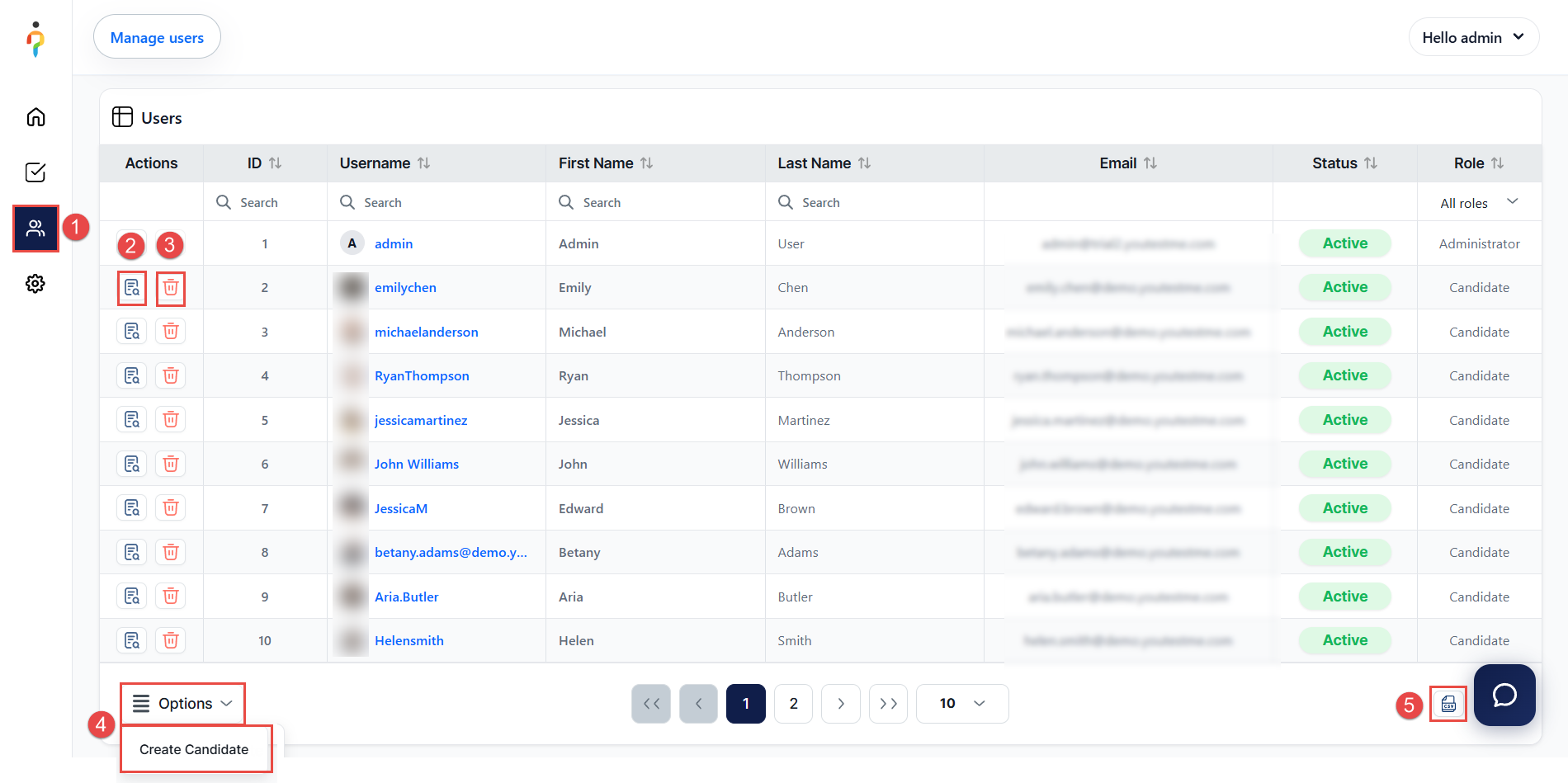 5. Export all users by downloading the data in CSV format.
