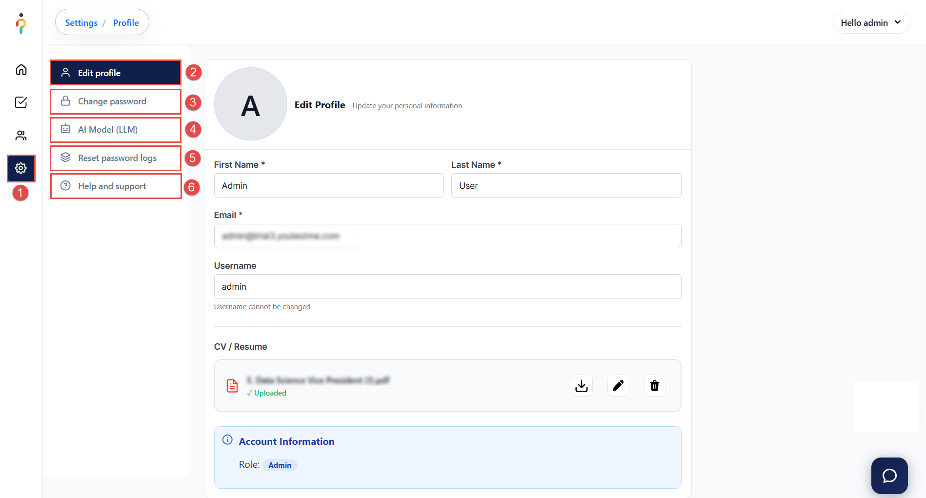 1. Edit Profile – Update your personal information and manage your CV (download, edit, or delete).