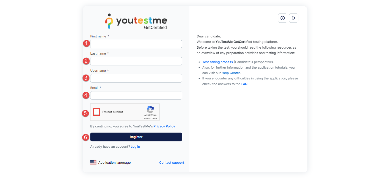 In the registration form, you will be prompted to provide the following information:
