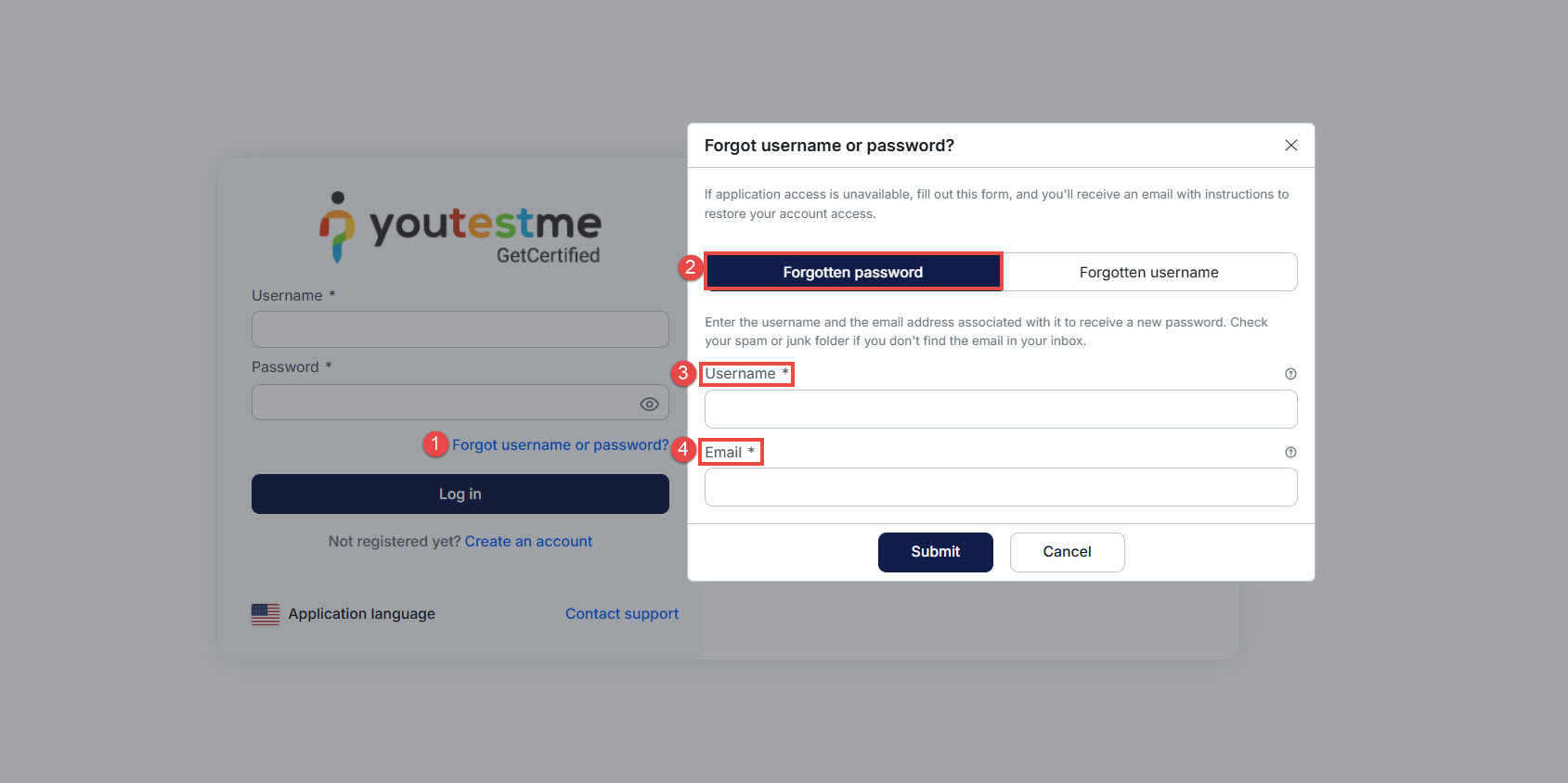 12. Contact Support: Use this option to send a direct email request to the support team for assistance with login or account issues.