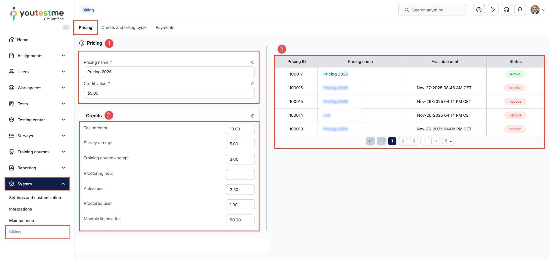 Proctored user – The number of credits charged for each user who takes exams under proctoring conditions.
