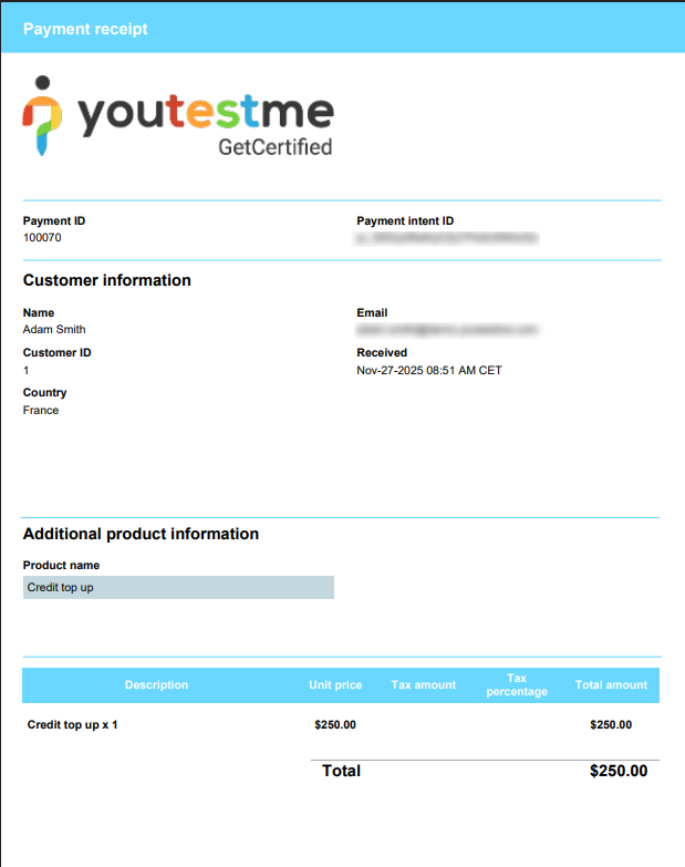 An example receipt is displayed below for reference. For details on how to customize receipt labels, please refer to the related article.